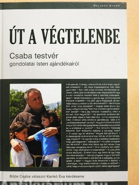 Az Ablak a Végtelenre igazából a hit szintjén szeretett volna világosságot gyújtani, hogy a gondolkodó ember tisztán lásson, értse meg a világunkat összetartó csodálatosan szép igazságokat, törvényeket. Az Út a Végtelenbe a kibontakozás, a megvilágosodás könyve, az igaz emberré válás útján szeretne társunk lenni. Álmaink, önmagunk csendes valóra váltásában szeretne vezetni, bátorítani, vigasztalni, mellettünk lenni. Jézus Krisztus a katolikus egyház hét csodálatosan szép szentségét mint vándorlásunkat segítő mankót és úti eledelt kínálja fel nekünk. Általuk táplál, vigasztal, megmos, felemel, újból és újból a Végtelenbe vezető pályánkra helyez minket. A nagy Isteni igazságok körüli kisebb testvéri útkereséseim gondolatok csupán, amelyek nekem, a kósza vándornak a megvilágosodás útján hasznos társaim voltak. Persze tudom, hogy ugyanazt az igazságot nagyon sok irányból meg lehet közelíteni, sokkal tudományosabban vagy árnyaltabban ki lehet azokat bontani. Egyszerű könyveimet elsősorban felnövekvő szép fiaimnak és a hittel ismerkedő, az igazságra szomjas embereknek írom, és az a célom, hogy a titkokat ők is megértsék, a végtelenhez tartó vándorútjukra könnyedén magukkal is vigyék. CSABA TESTVÉR