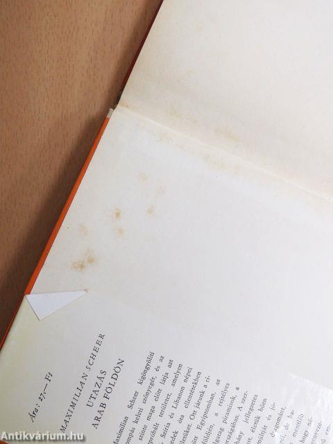 Maximilian Scheer kigöngyölíti színpompás keleti szőnyegét, és az olvasó szinte maga előtt látja azt a sokatpróbált területet, amelyen Egyiptom, Szíria és Libanon népei élik évezredek óta ellentétekben bővelkedő életüket Ott járunk a riporterrel együtt Egyiptomban, az ősi kultúra földjén, a rejtélyes szfinksz, a hallgatag piramisok, a titokzatos Nílus országában. A szerző bemutat néhány jellegzetes egyiptomi embertípust, életük hűen példázza Egyiptom múltját és jövőjét. Megismerjük a dragománt, aki öt-hat nyelven beszél, de hagyományos öltözetben és mezítláb támad rá az idegenre, hogy néhány piasztert keressen idegenvezetői tudományából, és a jövő emberét, aki a legmodernebb ismeretek birtokában mintatelepülést irányít, gyárat vezet, a kisparasztot, aki azért vesz két feleséget, mert így jut a legolcsóbban munkaerőhöz, és a Párizsban doktorált újságírónőt. A riporterrel együtt beszélgetünk a Szuezi-csatorna révkalauzával - egyébként a könyv egyik legérdekesebb része az 1956-os révkalauz bojkott letörésének ismertetése - és a fegyvercsempész beduin sejkkel. Szinte magunk előtt látjuk a fellahot, aki faekével és meritőkanállal műveli földecskéjét, és a közösségben dolgozó földművest, aki a legmodernebb gépeket használja. Bepillantsát nyerünk a forrongó Közép-Kelet és Egyiptom életébe, megismerjük népeinek reményeit, terveit, felszabadulásukért, függetlenségükért vívott harcaikat. Az "Utazás arab földön" szórakoztat és tanít egyszerre, megismertet az "Ezeregyéjszaka" országai népeinek múltjával, jelenével és a jövőjükről is fellebbenti a fátylat.