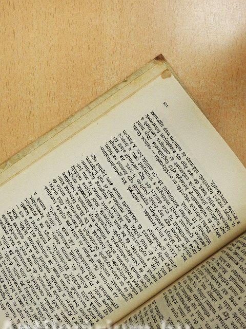 A borító, a lapélek és néhány lap foltos. A borító élei kopottak. Az előzéklapon tulajdonosi bejegyzés található.