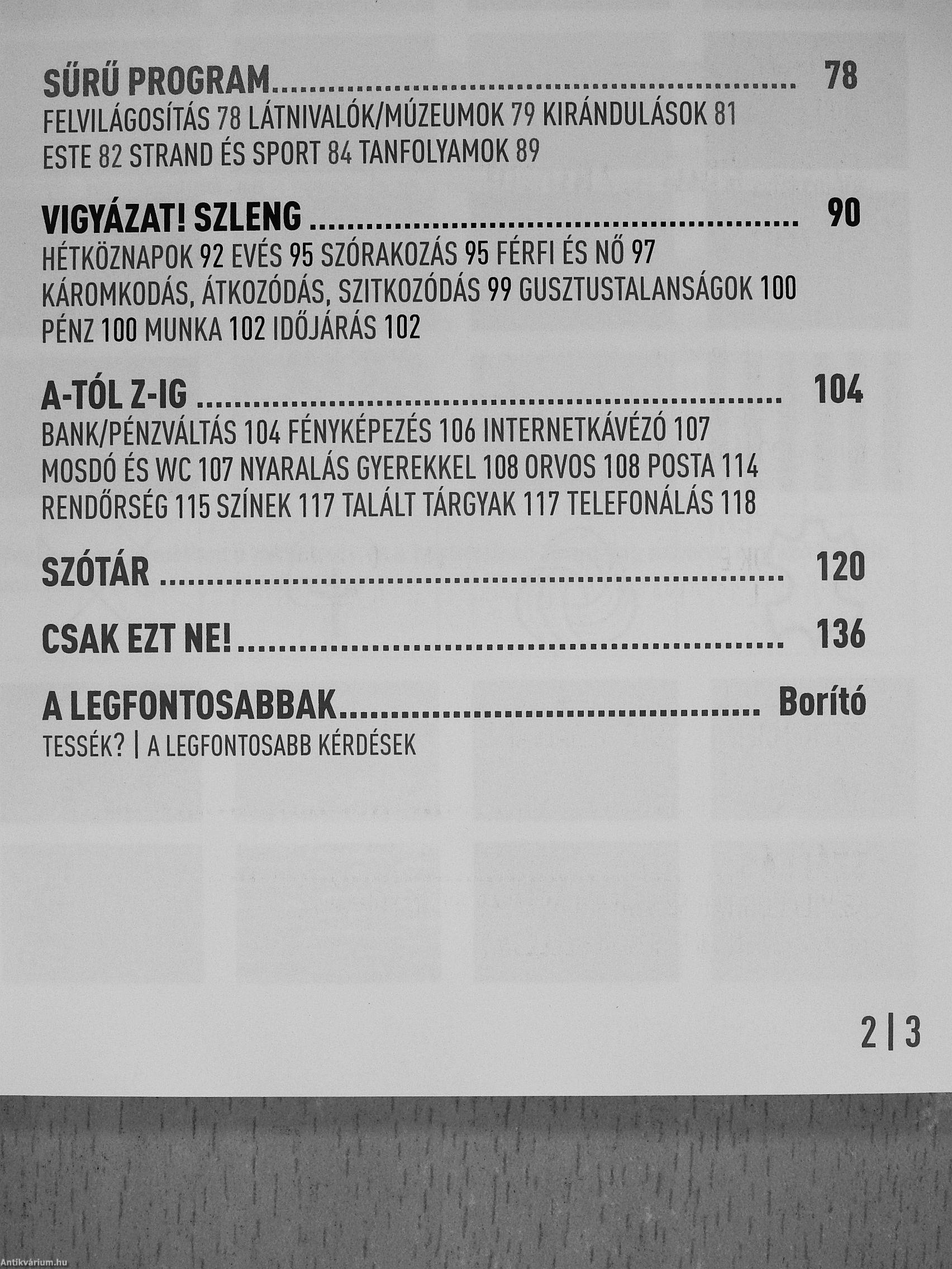 | Megjegyzés: | Színes fotókkal, színes és fekete-fehér illusztrációkkal. Kivágható miniszótárral. |