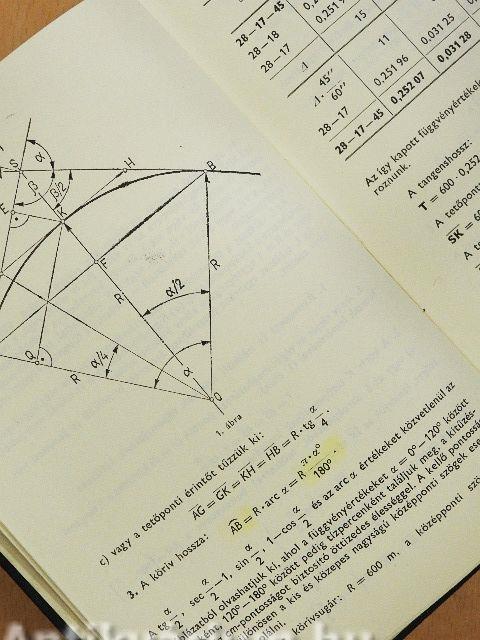 | Kerületi szögek értékei ívek kitűzéséhez R=50-20 000 m körívsugarak esetén | 369 |