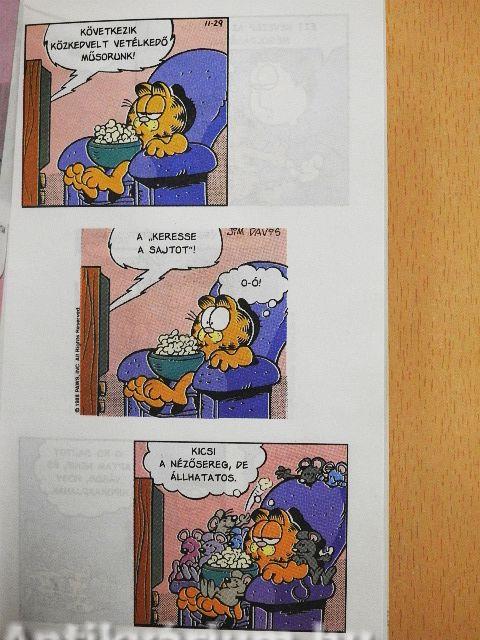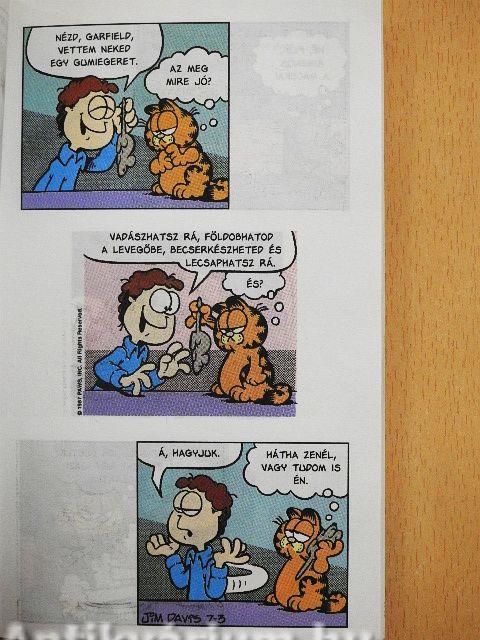 Garfield cseppet sem bánik kesztyűs manccsal az egerekkel. Jon hiába bíztatja: légy macska! Inkább heverészik, mint egerészik. Még hogy lasagna helyett négy lábon rohangászó bacilusgazdákkal tömje tele a hasát, hogy aztán neki is olyan borzalmas lehelete legyen, mint a többi egerésző macskának! Inkább a békés egymás mellett élés! Nem vár el mást a hívatlan társbérlőktől, mint hogy betartsák a házirendet: ne egyék el előle a sajtot, és ne rágják szét Jon lepedőjét. Ha mégis megteszik, nem marad el a példás büntetés: egy hátig nincs videójáték!