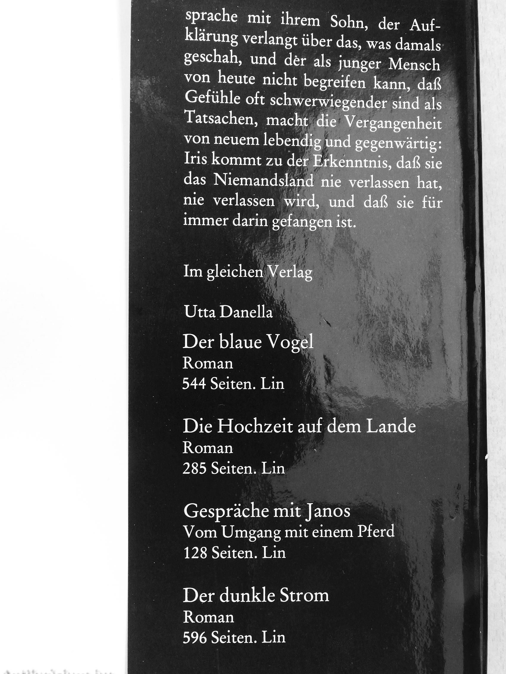 Sprache mit ihrem Sohn, der Aufklärung verlangt über das, was damals geschah, und dtr als junger Mensch von heute nicht begreifen kann, daß Gefühle oft schwerwiegender sind als Tatsachen, macht die Vergangenheit von neuem lebendig und gegenwärtig: Iris kommt zu dpr Erkenntnis, daß sie das Niemandsland nie verlassen hat, nie verlassen wird, und daß sie für immer darin g^angen ist.