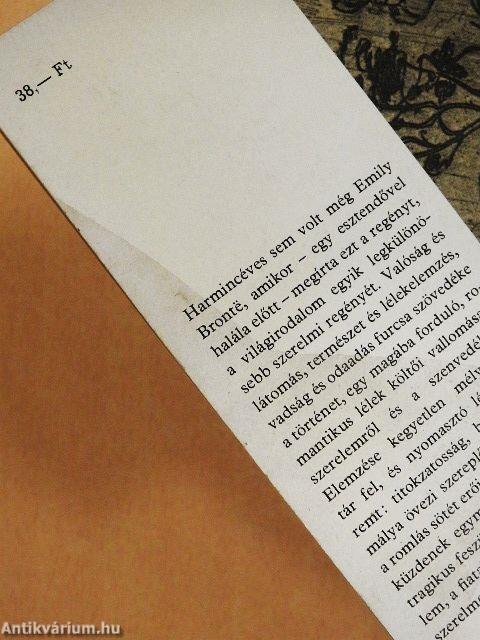 Emily Brontë műveinek az Antikvarium.hu-n kapható vagy előjegyezhető listáját itt tekintheti meg: Emily Brontë könyvek, művek