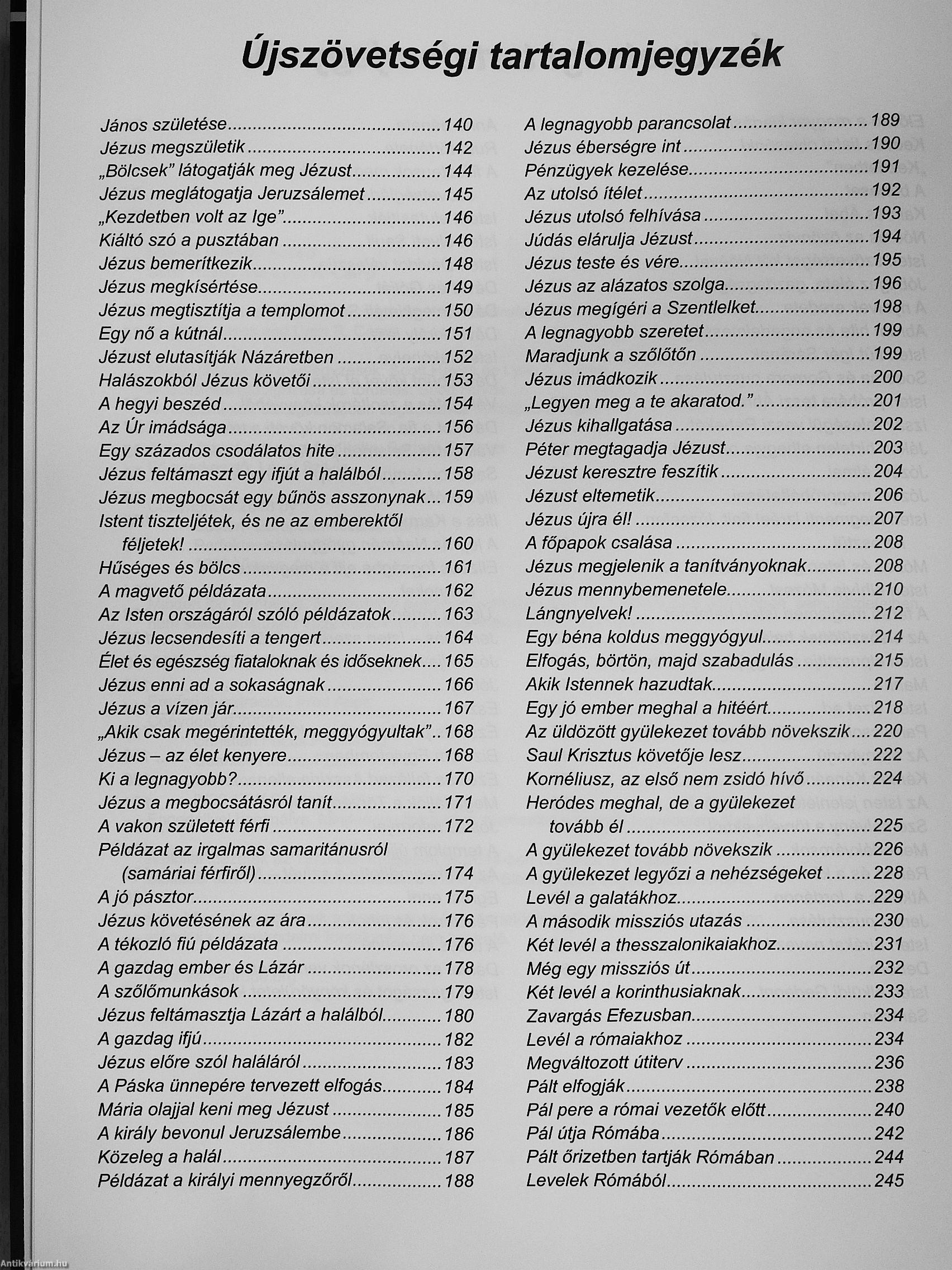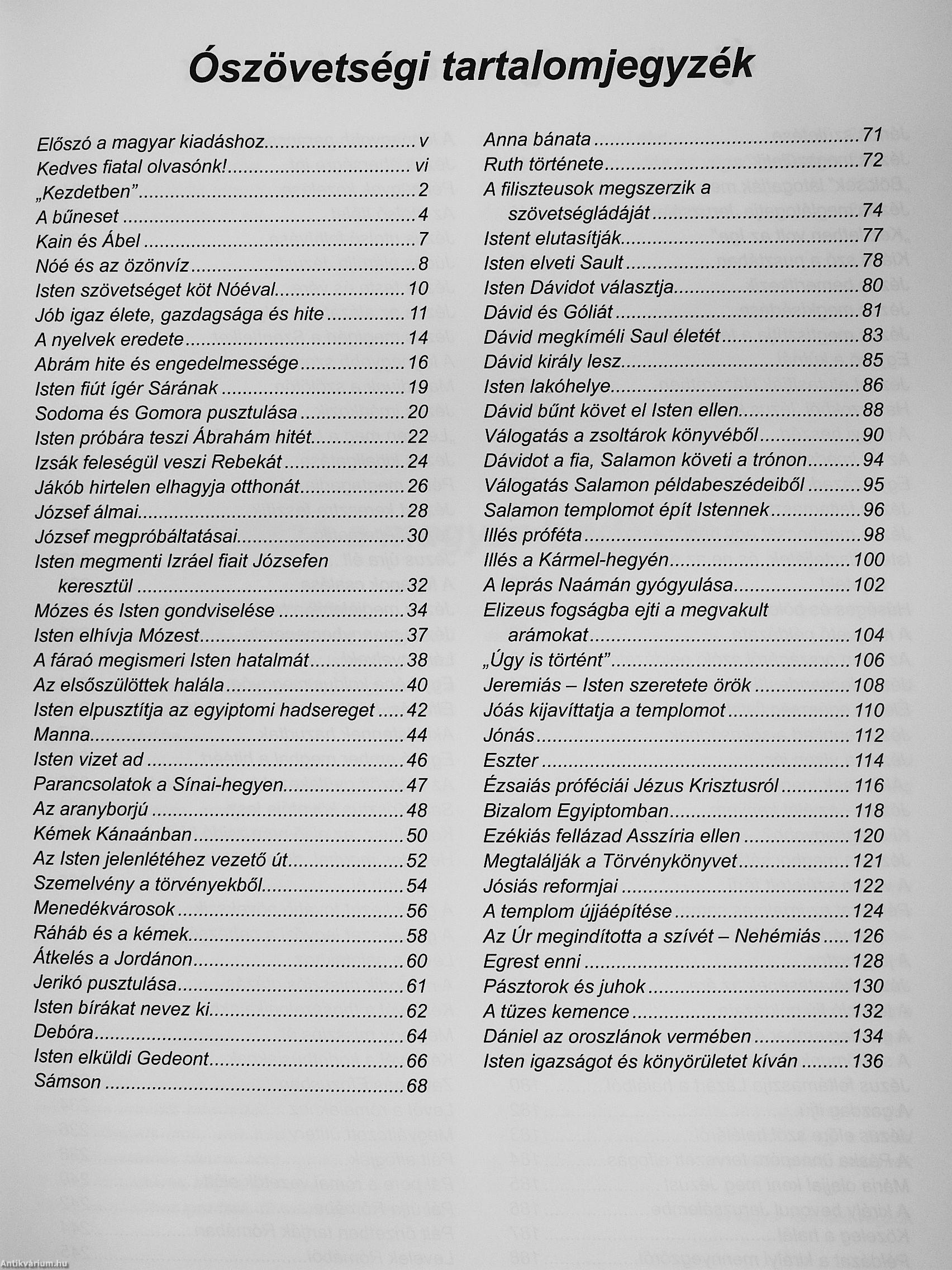 Ebben a gyönyörűen illusztrált kiadásban a szövegeket minden esetben szó szerint idézzük a RÜF magyar bibliakiadásból, így átfogalmazás nélkül olvashatod Isten Igéjét. A könyv tartalmazza továbbá az ókori világ és egyes történelmi események rövid magyarázatát, ezzel segítve a megértést. Találsz még