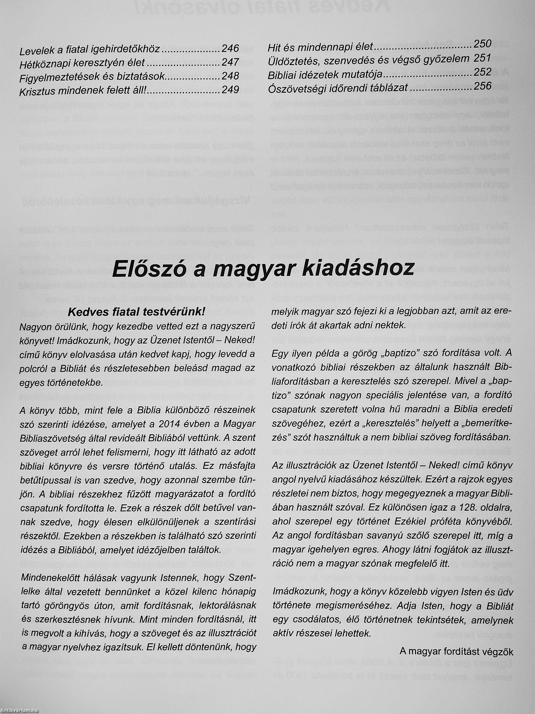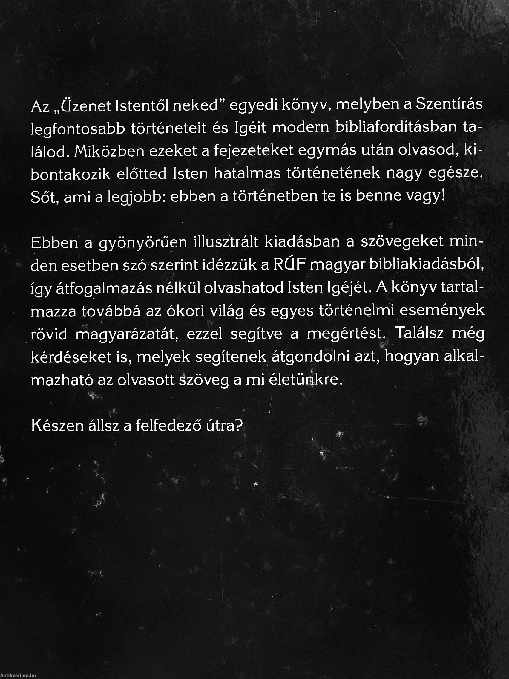 Az „üzenet Istentől neked" egyedi könyv, nnelyben a Szentírás legfontosabb történeteit és Igéit nnodern bibliafordításban találod. Miközben ezeket a fejezeteket egymás után olvasod, kibontakozik előtted Isten hatalmas történetének nagy egésze. Sőt, ami a legjobb: ebben a történetben te is benne vagy!