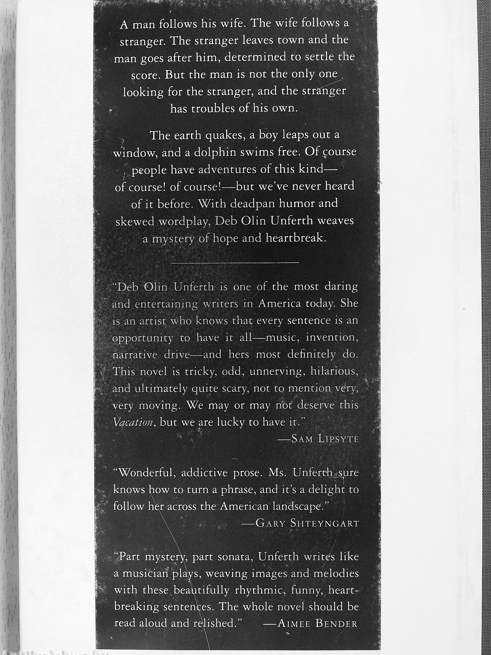 ,"Deb Olin Unferth is one of, the most daring and entertaining writers in America today. She is an artist who knows that; every sentence is an opportunity to have it all—music, invention, narrative drive—and hers most definitely do. This novel is tricky, odd, unnerving, hilarious, and ultimately quite scary, not to mention very, very moving. We may or may not deserve this Vi^cation, but we are lucky to have it."