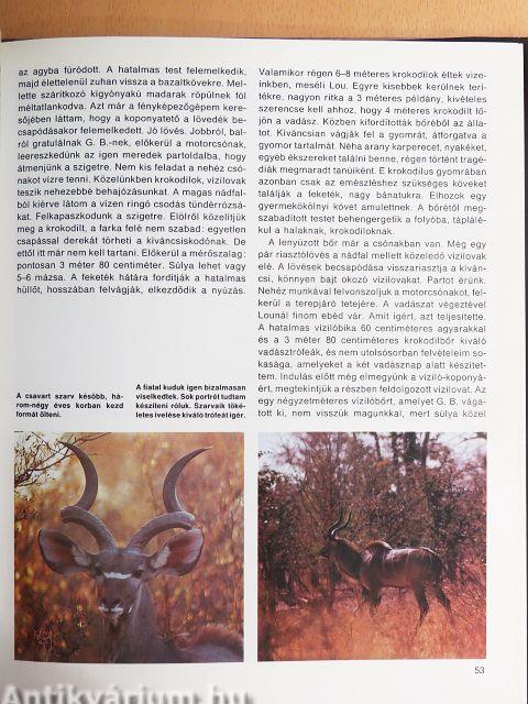 Nagy barangolásra hívom tehát most önöket. Hívom azokra az afrikai ösvényekre, amelyeket bejártam. Szeretném bemutatni, elmondani, mit láttam, mit tapasztaltam. Hiszen a természetben készített felvételeimet sohasem csupán magamnak örökítem meg, hanem mindazoknak, akik szeretik a természetet, akik ugyanúgy vágynak arra, hogy megismerjék szépségeit, titkait, mint én. Tanulságos barangolást, kellemes időtöltést kívánok azoknak, akik velem járják be Kudu-föld megragadó tájait.
