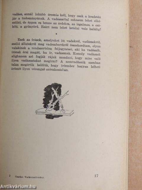 Volt egypár esztendő az életemben, amikor csak vadász voltam. Mások azt hitték rólam, hogy joghallgató vagyok, majd hogy jogszigorló, én azonban, - most már bevallhatom, - tudtam, hogy ez tévedés. Mert bizony én csak vadász voltam, mégpedig olyan szenvedélyes, hogy szeptember végére a vizslám már rendesen soványabb volt, mint az agár, magam pedig vékonyabb, mint a puskám csöve és barnább, mint az agya. Ha valaki akkoriban azt mondta volna, hogy lesz idő, mikor eszembe sem fog jutni, hogy kiváltsam a vadászjegyemet, a szemébe nevettem volna.