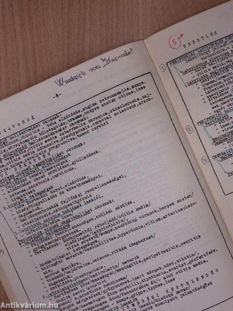 A borító foltos, belső oldala elszíneződött. Több lapon jelölés, aláhúzás, bejegyzés látható.