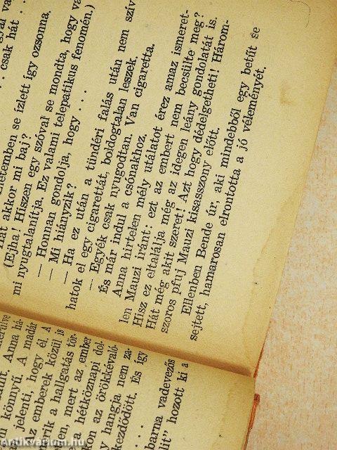 - Mit nyafog kérem? Mi az, hogy csalódni? Mert őszinte vagyok? Mert egyenesen megmondom? Hogy elegem van? Mér? Köteles vagyok lángolni magáért? Egyik ember három nap alatt jön rá, másik egy év alatt. De az nem baj. Jobb későn, mint soha. Óhajt még valamit? Vagy elég? Meguntam magát, na! Most jobb?... Vissza
