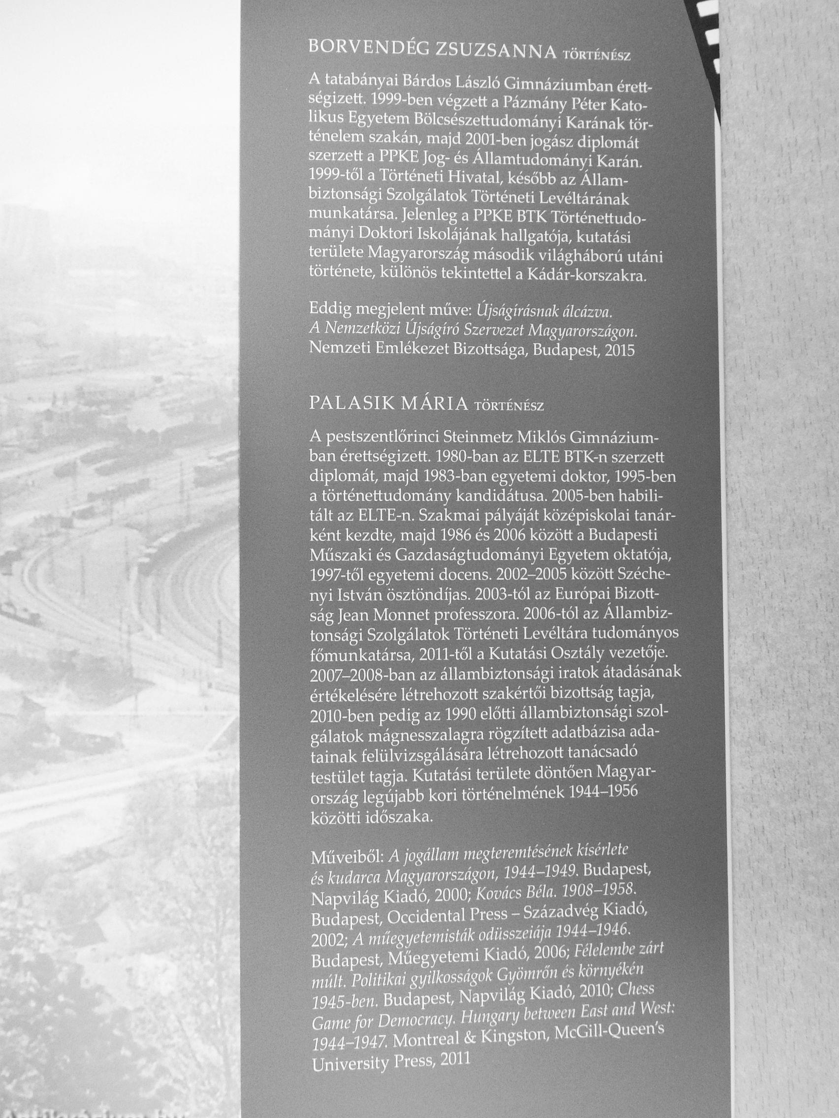 Műveihői: A jogállm megteremtésének kísérlete és kudarca Magyarországon, 1944-1949. Budapest, Napvilág Kiadó, 2000; Kovács Béla. 1908-1958. Budapest, Occidental Press - Századvég Kiadó, 2002; A műegyetemisták Odüsszeiája 1944-1946. _ Budapest, Mfegyetemi Kiadó, 2006; Félelembe zart múlt. Politikai gyilkosságok Gyomron es komyeken 1945-ben. Budapest, Napvilág Kiadó, 2010; Chess