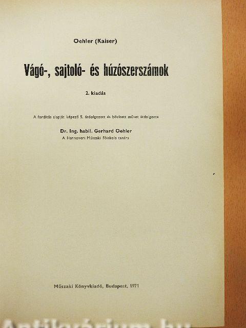 rövid négyéves szünet után megint szükségesnek mutatkozott könyvem újabb kiadása. Ebben az időszakban a technika rohamos fejlődése erre a területre is nagy hatással volt, és szükségessé tette alapos átdolgozását. Így ebbe a kiadásba két új főrészt, a nagysebességű alakító eljárások szerszámait és a sajtolóüzemek automatizálását vettük be. Az előző kiadásban a nagypontosságú vágószerszámokat és a hidrodinamikus mélyhúzást csak a függelékben a könyv kiegészítéseként röviden tárgyaltuk. Ezt a részt lényegesen kibővítettük. A hajlítószerszámok fejezete, a kettős működésű U hajlítószerszámhoz való új szerszámlappal, a mélyhúzás fejezete két új fejezettel, a ráncgátló nélküli mélyhúzással és a mélyhúzás közben harántirányban vezetett szerszámelemek ismertetésével bővült.