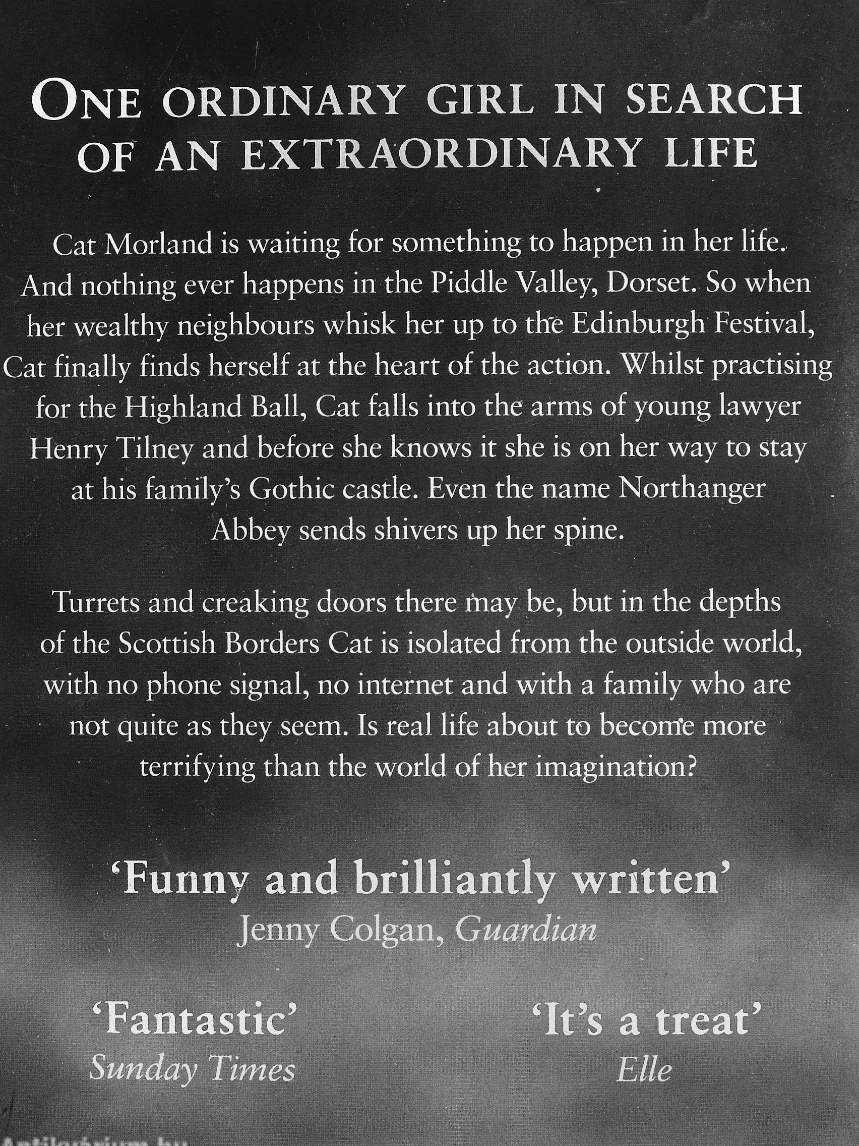 Cat Morland is waiting for something to happen in her life. And nothing ever happens in the Piddle Valley, Dorset. So when her wealthy neighbours whisk her up to the Edinburgh Festival, Cat finally finds herself at the heart of the action. Whilst practising for the Highland Ball, Cat falls into the arms of young lawyer Henry Tilney and before she knows it she is on her way to stay at his family's Gothic castle. Even the name Northanger Abbey sends shivers up her spine.