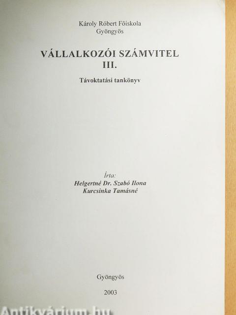 Vállalkozói számvitel III. Vállalkozói számvitel III.