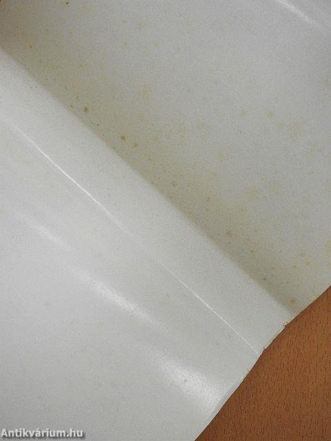 A védőborító és a lapélek foltosak. A gerinc elszíneződött.