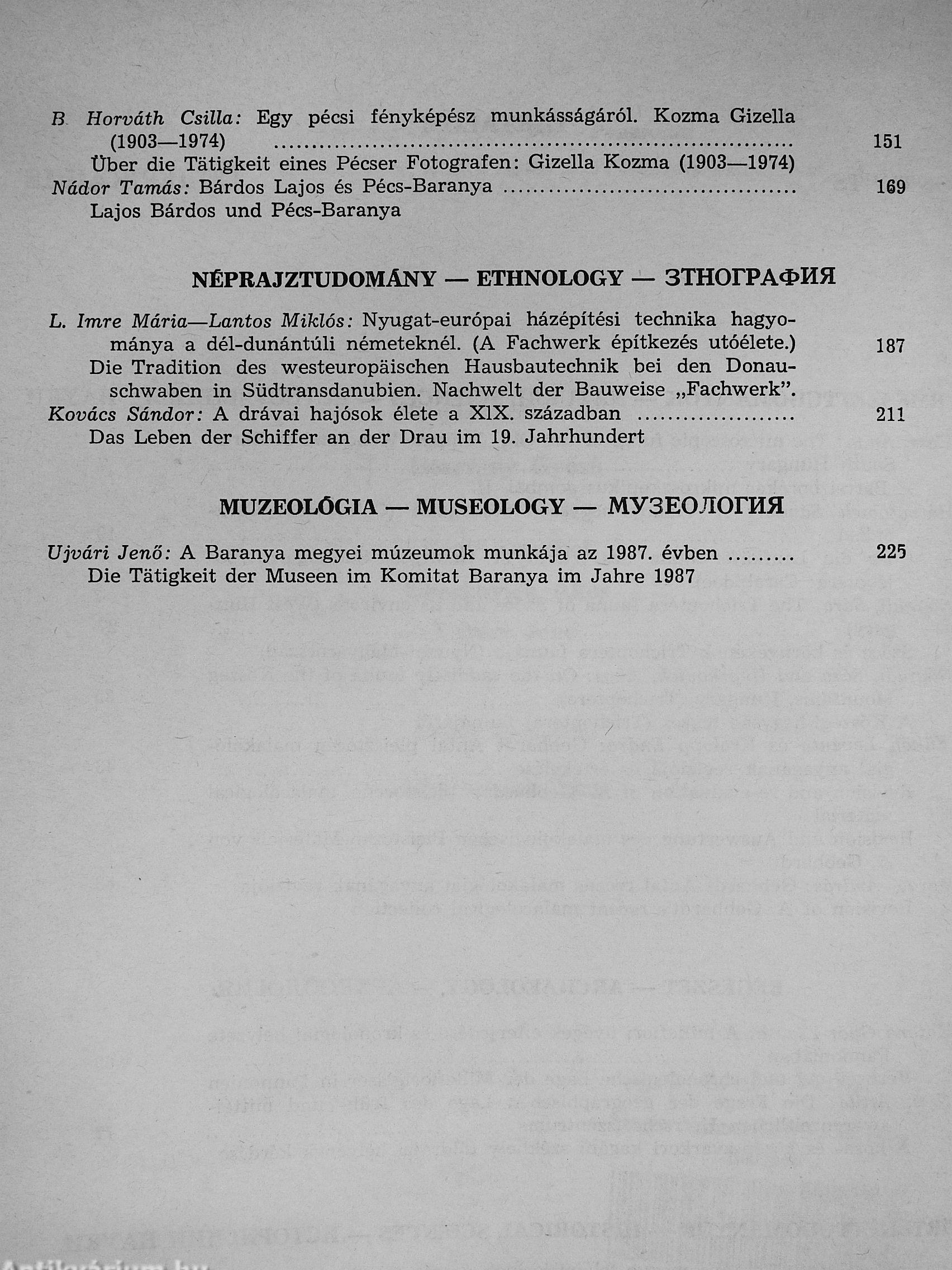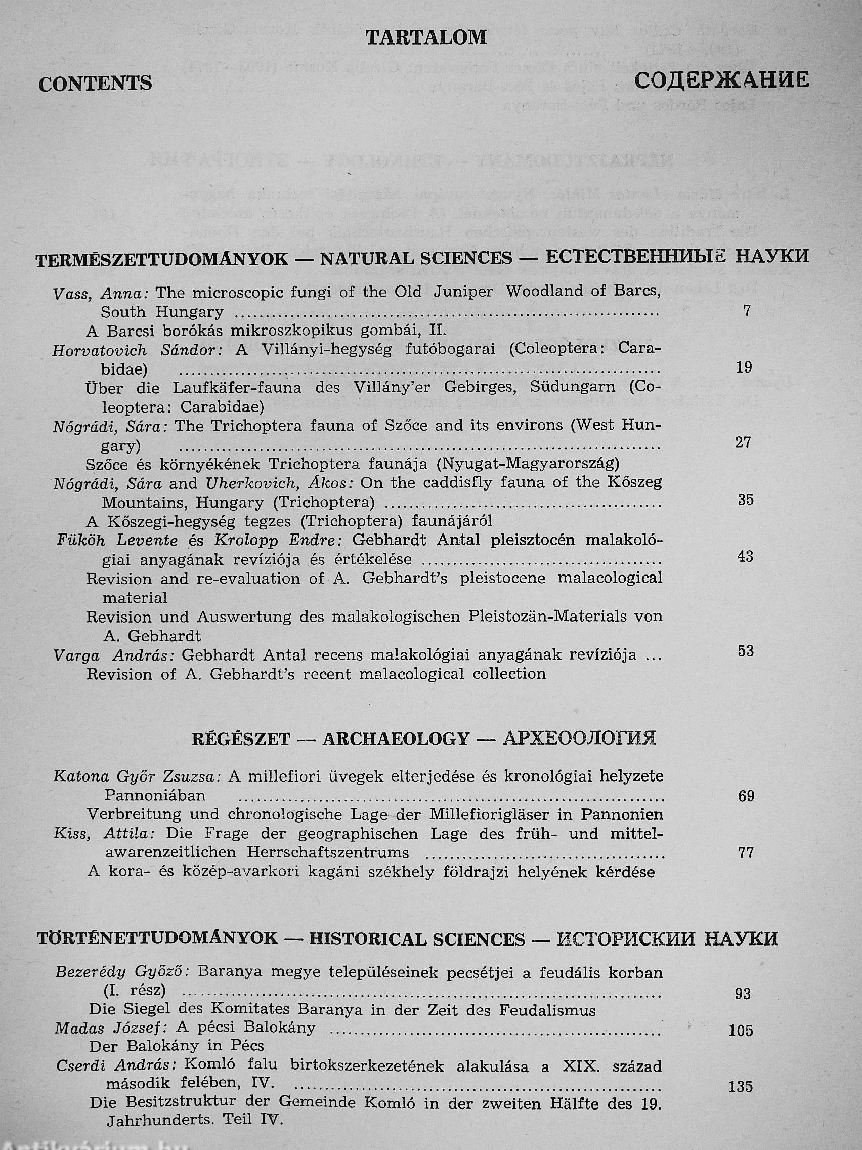 | Megjegyzés: | Fekete-fehér fotókkal, illusztrációkkal. Megjelent 700 példányban. Angol és német nyelvű összefoglalókkal. További szerzők a tartalomban. |