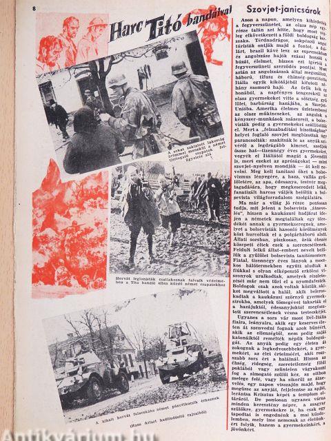 | Megjegyzés: | Megjelenik minden szombaton. Fekete-fehér fotókkal és egy színnel színezett illusztrációkkal. Nyomtatta a Pallas r.-t. offset körforgó gépein. További kapcsolódó személyek a kötetben. |