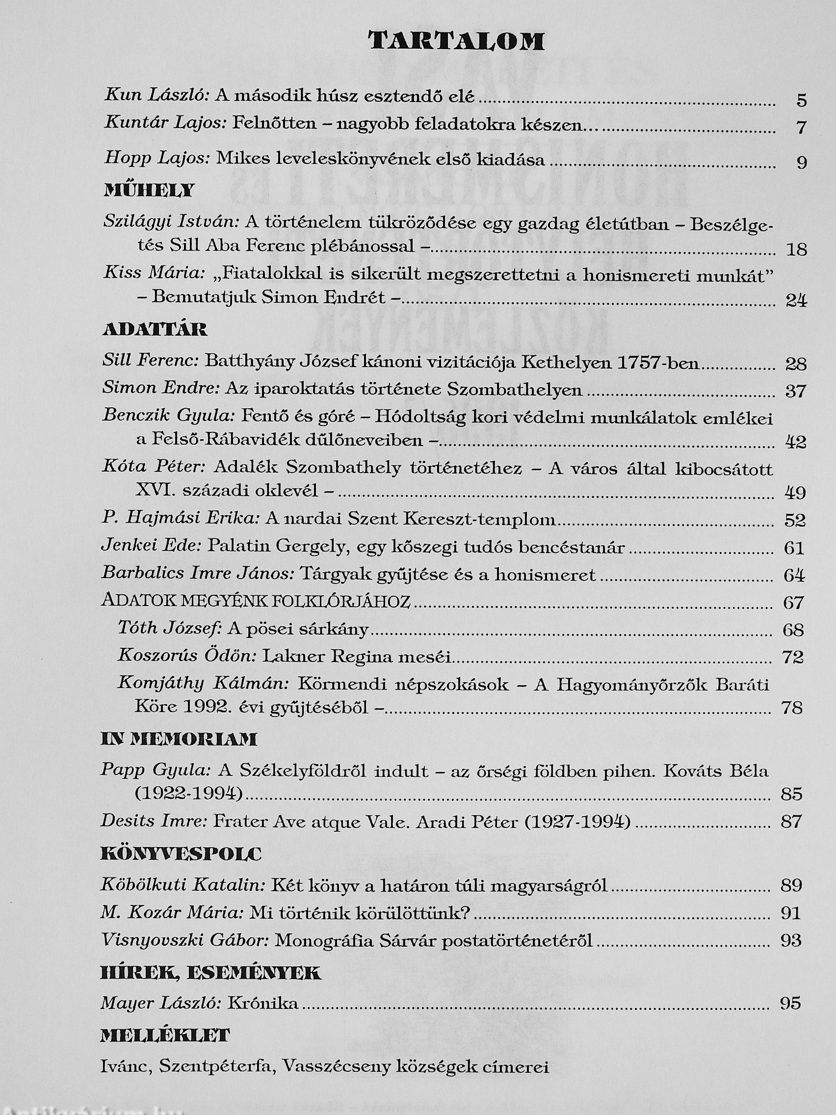 Vasi honismereti és helytörténeti közlemények 1995/1.