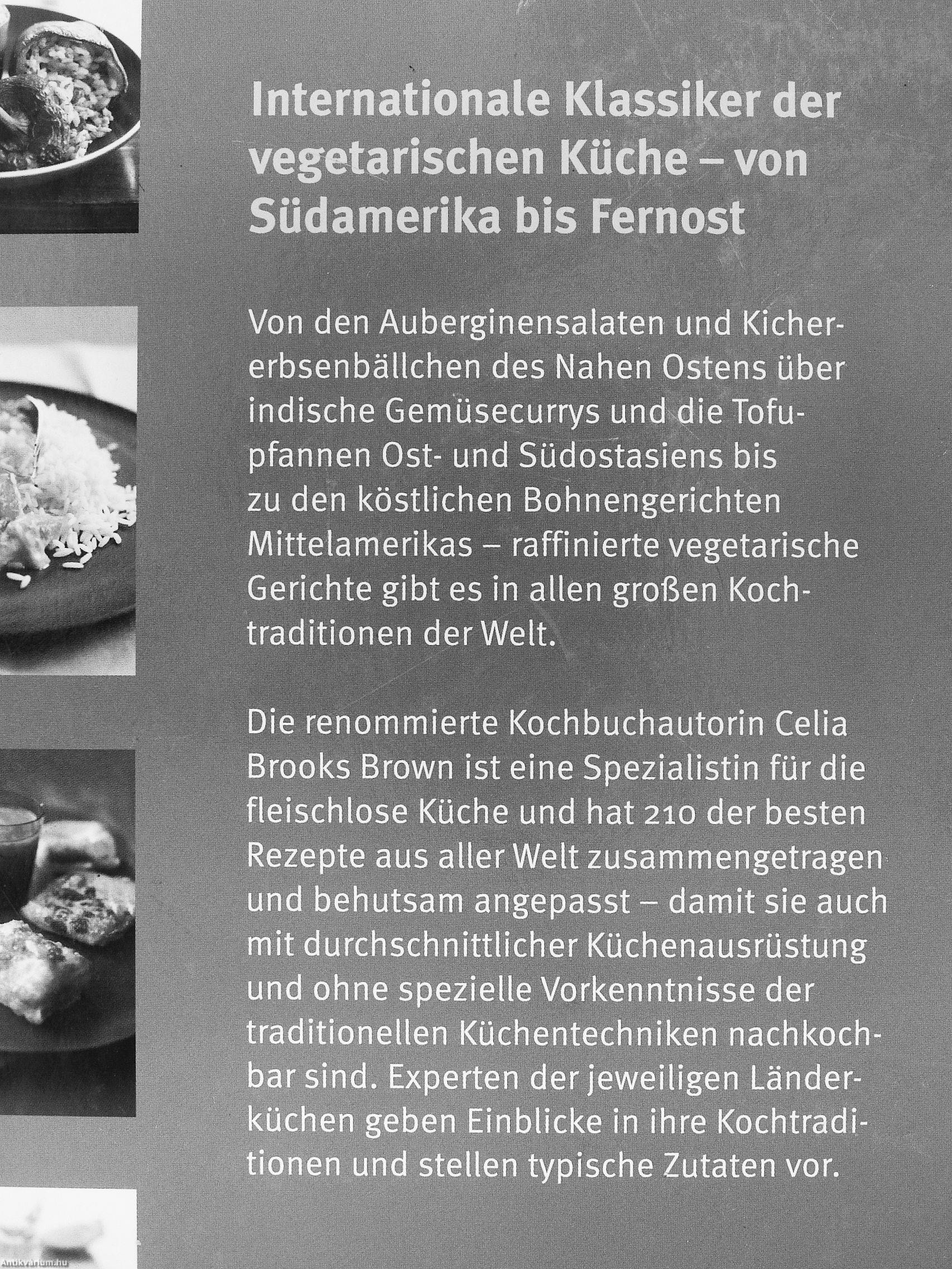 Die renommierte Kochbuchautorin Celia Brooks Brown ist eine Spezialistin für die fleischlose Küche und hat 210 der besten Rezepte aus aller Welt zusammengetragen und behutsam angepasst - damit sie auch mit durchschnittlicher Küchenausrüstung und ohne spezielle Vorkenntnisse der traditionellen Küchentechniken nachkoch-barsind. Experten der jeweiligen Länderküchen geben Einblicke in ihre Kochtraditionen und stellen typische Zutaten vor.