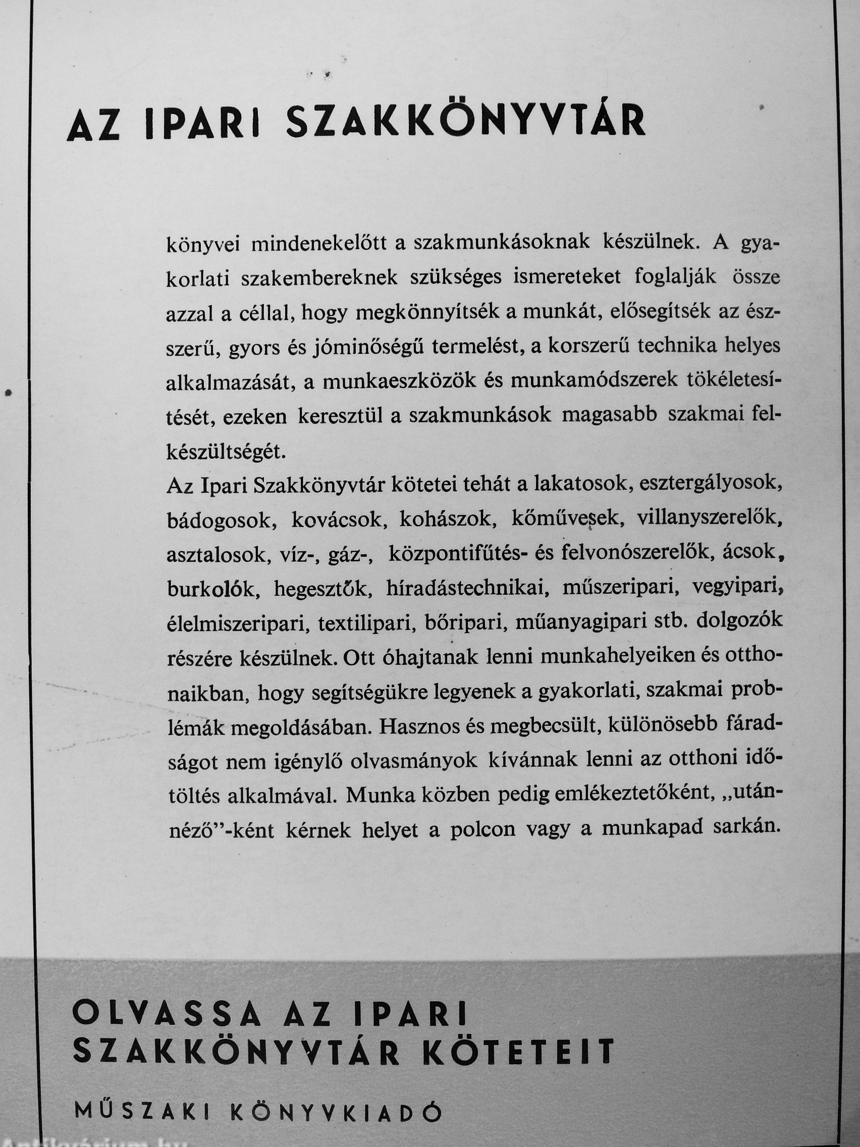 OLVASSA AZ IPARI SZAKKÖNYVTÁR KÖTETEIT