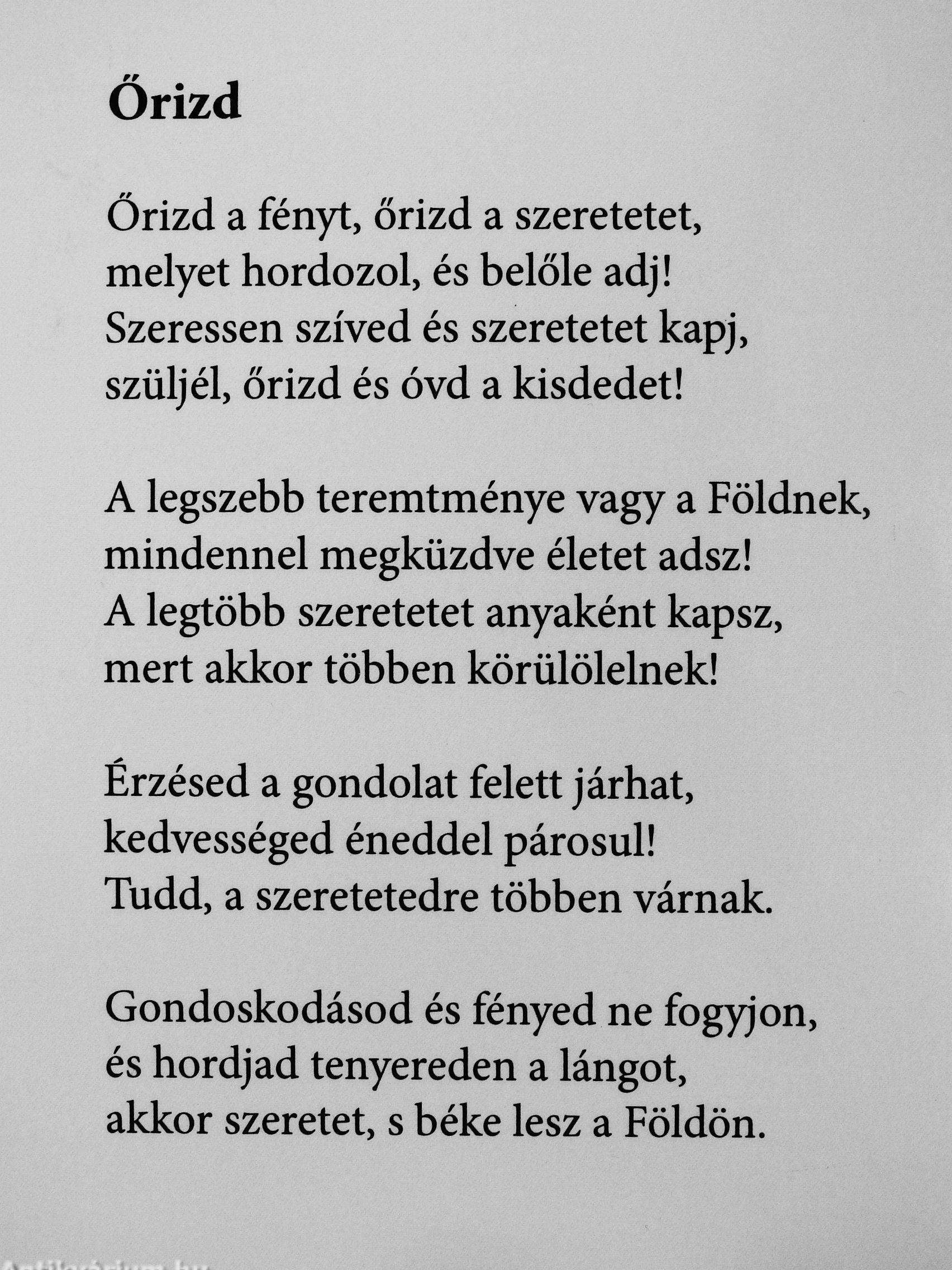 Őrizd a fényt, őrizd a szeretetet, melyet hordozol, és belőle adj! Szeressen szíved és szeretetet kapj, szüljél, őrizd és óvd a kisdedet!