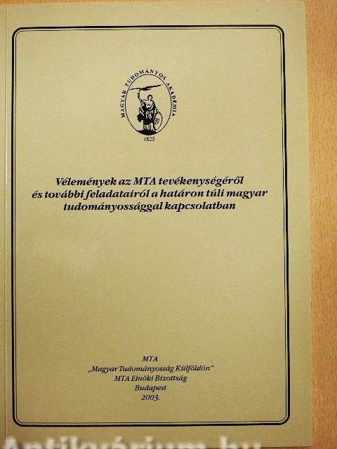 Vélemények az MTA tevékenységéről és további feladatairól a határon túli magyar tudományossággal kapcsolatban