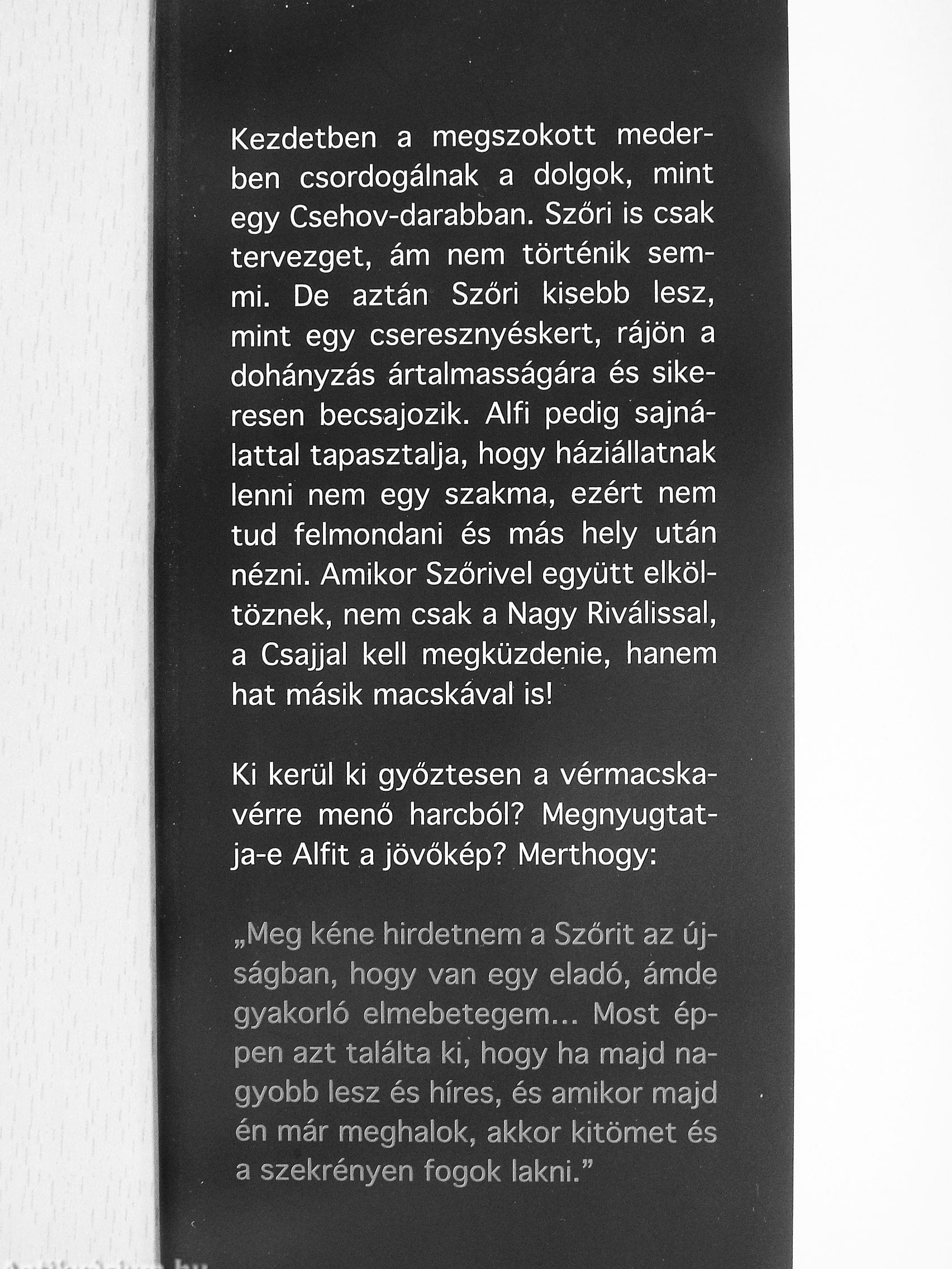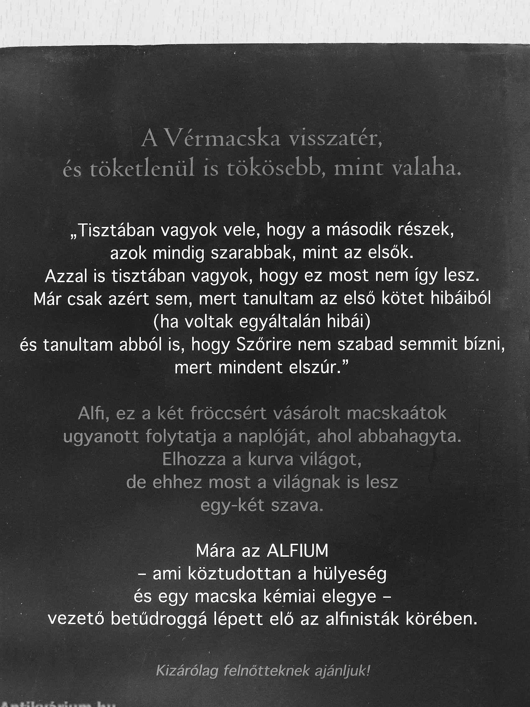 „Tisztában vagyok vele, hogy a második részek, azok mindig szarabbak, mint az elsők. Azzal is tisztában vagyok, hogy ez most nem így lesz. Már csak azért sem, mert tanultam az első kötet hibáiból (ha voltak egyáltalán hibái) és tanultam abból is, hogy Szőrire nem szabad semmit bízni,