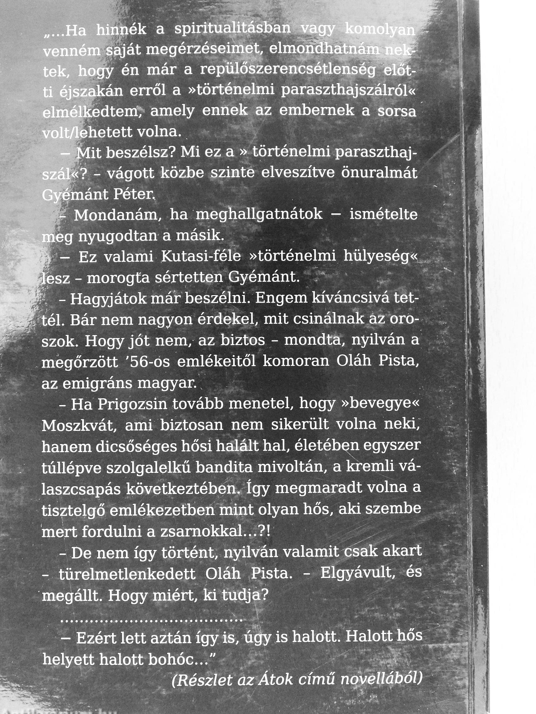 „ Ha hinnék a spirituan^ásLa 11 va venném aját megérzéseimet, elmonciu tek, h gy én már a repülőszerencsétlenség előtti zakán erről a »történelmi paraszthajszálról« eJ :edtem> amely ennek az embernek a sorsa hetett volna. ' V ^ ,,