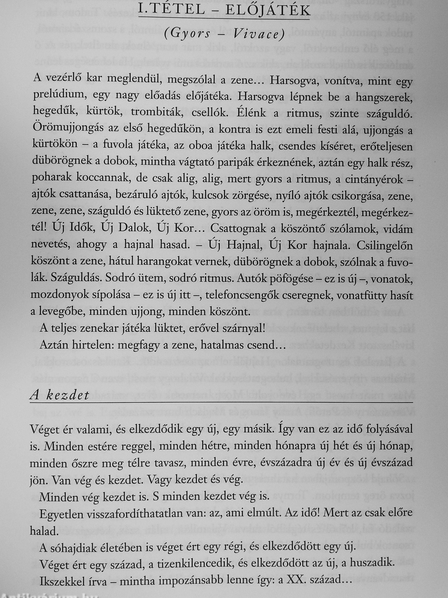 E nagyszabású mű szerkezeti kerete egy óriáskoncert, egy szimfonikus költemény, melynek előadása 1901 első éjszakáján veszi kezdetét s 2000 december 31 -én, szilveszter éjszakáján ér véget. '