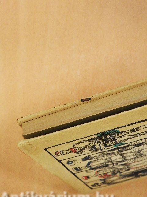 A védőborító kopott, elszíneződött. A borító éle sérült, a lapélek foltosak.