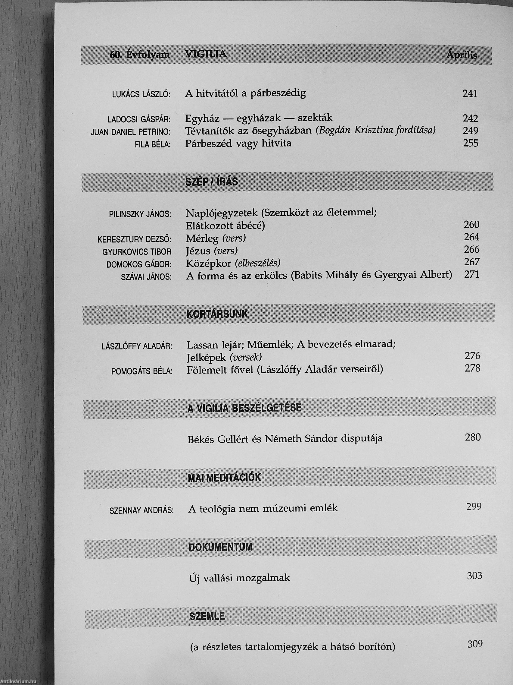| Sorozatcím: | Vigilia |