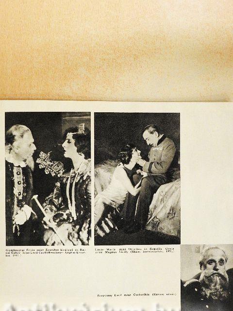 A színház az illanó pillanat művészete. Eredményeit nem őrzik múzeumok, vaskos fóliák - csak a közönség emlékezete. Ami mégis megmarad - néhány fénykép, plakát, lelkes vagy szigorú leírás - csupán halvány visszfénye annak a sok erőfeszítésnek, szenvedélynek, tehetségnek és akarásnak, amely ott feszített a művészekben évtizedekkel ezelőtt. Mégis van folytonossága ennek a művészetnek is, itt is továbbadja minden generáció az utána következőknek mindazt, amit kiharcolt és megteremtett. A mai művészek alkotásaiban ott van a régieké is, egy-egy alakítás, rendezés mélyén ott szunnyad az elődök akarása is. És igen gyakran éppen ma valósul meg igazán mindaz, amiért az elődök küzdöttek, amikről ők álmodtak, s amit az ő világukban nem valósíthattak meg. Így teljesítik be az utódok azokat a törekvéseket, amelyekért annak idején hiába sóvárogtak a nagyszerű elődök.