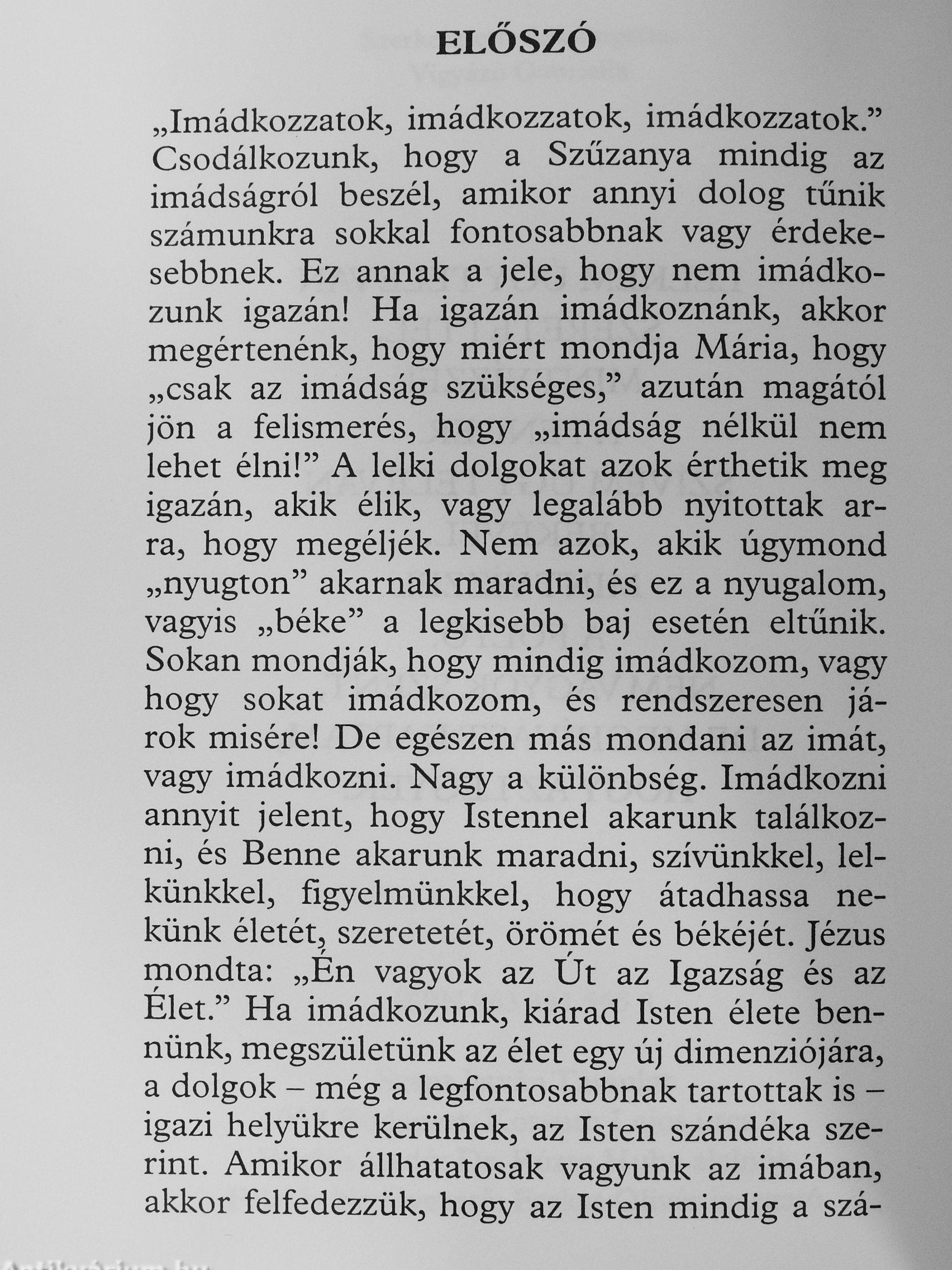 „Imádkozzatok^mádkozzatok^ imádkozzatok!" Csodálkozunk^::. hogy a Szüzanya mindig az imádságról beszél, amikor annyi dolog fákt-dt számunkra sokkal fontosabbnak vagy érdekesebb-: nek. Ez ansmk a jele, hogy nem; imádkozunk igazán! Egészen .