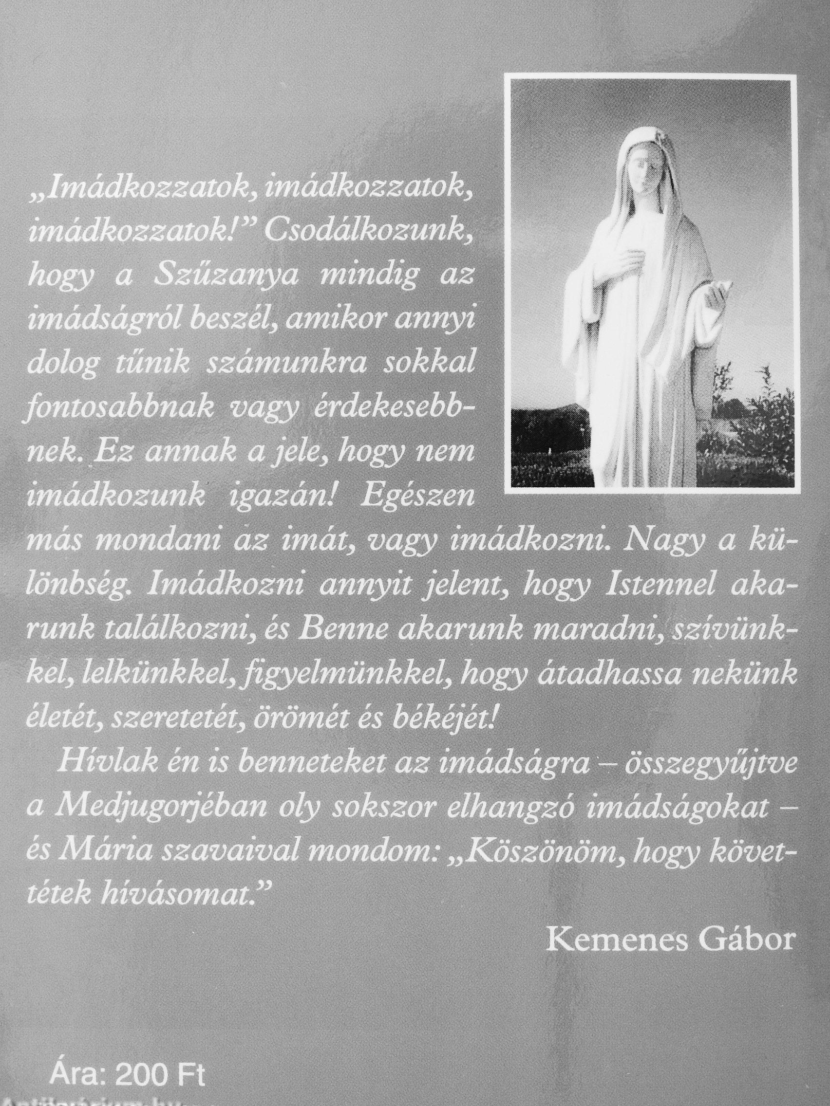 Hívlak én is benneteket az imádságra - összegyűjtve a Medjugorjéban oly sokszor elhangzó imádságokat - . és Mária szavaival mondom: „Köszönöm, hogy kövei^ tétek hívásomat" . . ^ ';• .•:' .•• ;•;. r-