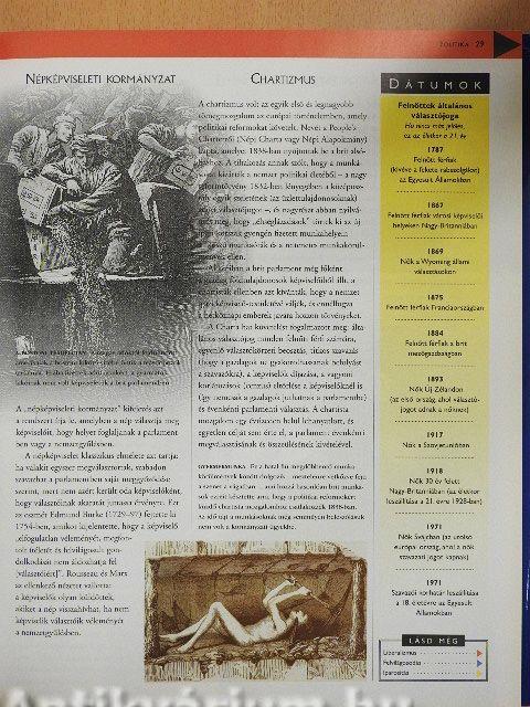 A művészet, a természettudomány, a filozófia, a politika, valamint a "humán tudományokhoz" tartozó pszichológia, antropológia, szociológia és közgazdaságtan fejezetei széles körű áttekintésre nyújtanak lehetőséget a modern gondolkodás számára. Az utalások rendszere élő kapcsolatot teremt az egyes fejezetek között. A gyönyörű illusztrációk, a tartalmas képaláírások és a legfőbb fejlődési irányzatok rendszerezett dátumai révén az olvasó sokoldalúan használható kézikönyvet tarthat az íróasztalán. Érettségi, felvételi vizsga előtt állóknak különösen jól használható, hiszen a teljes műveltséganyagot egyszerre (!) tartalmazza.
