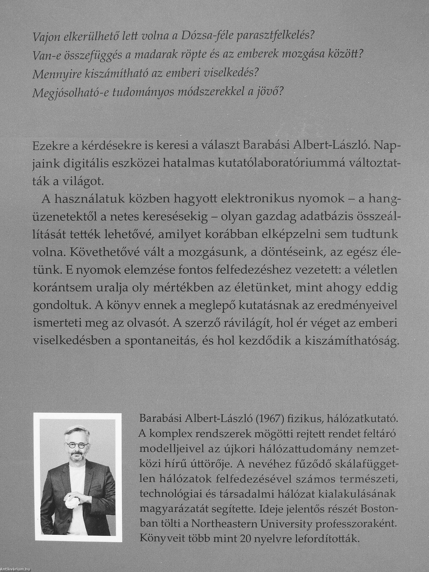 Barabási Albert-László műveinek az Antikvarium.hu-n kapható vagy előjegyezhető listáját itt tekintheti meg: Barabási Albert-László könyvek, művek
