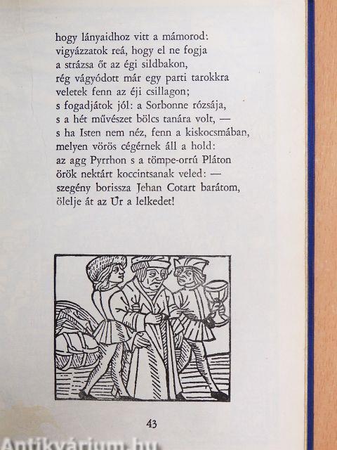 Megjegyzés: Hetedik kiadás. A könyvben található fekete-fehér fametszeteket ismeretlen mesterek készítették a könyvnyomtatás első évtizedeiben. A kötés és címoldal Kolozsváry Sándor terve. Faludy György mestere és néhai barátja Feleky Géza emlékének szánta e verseskötetet.