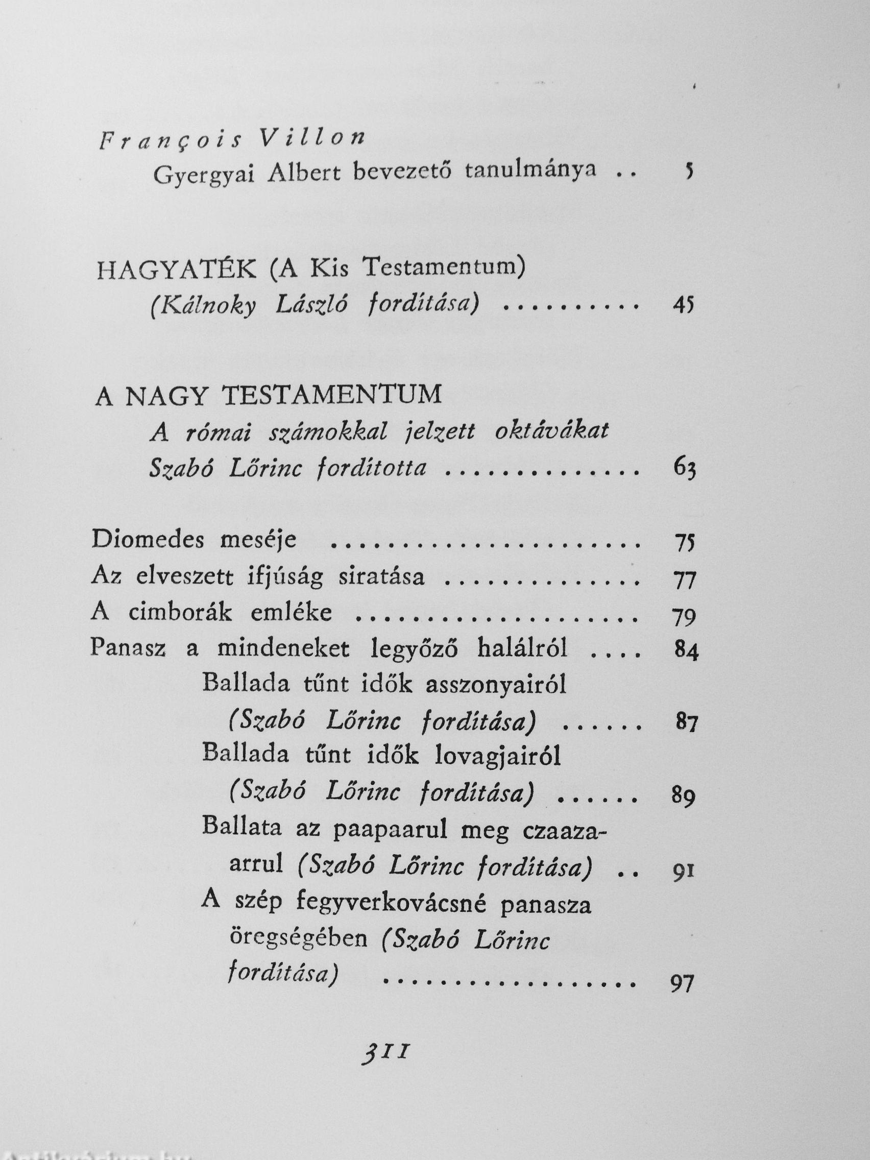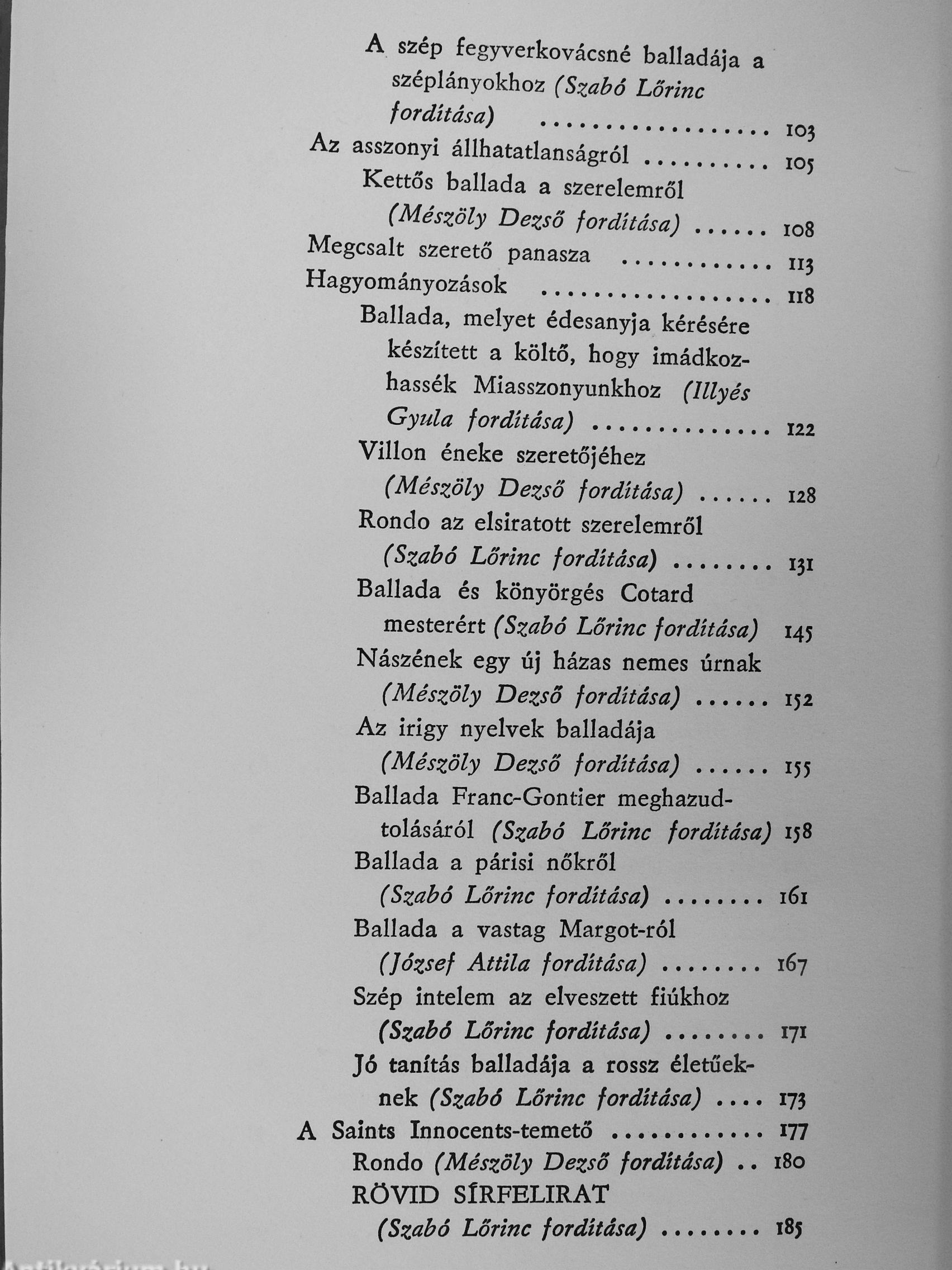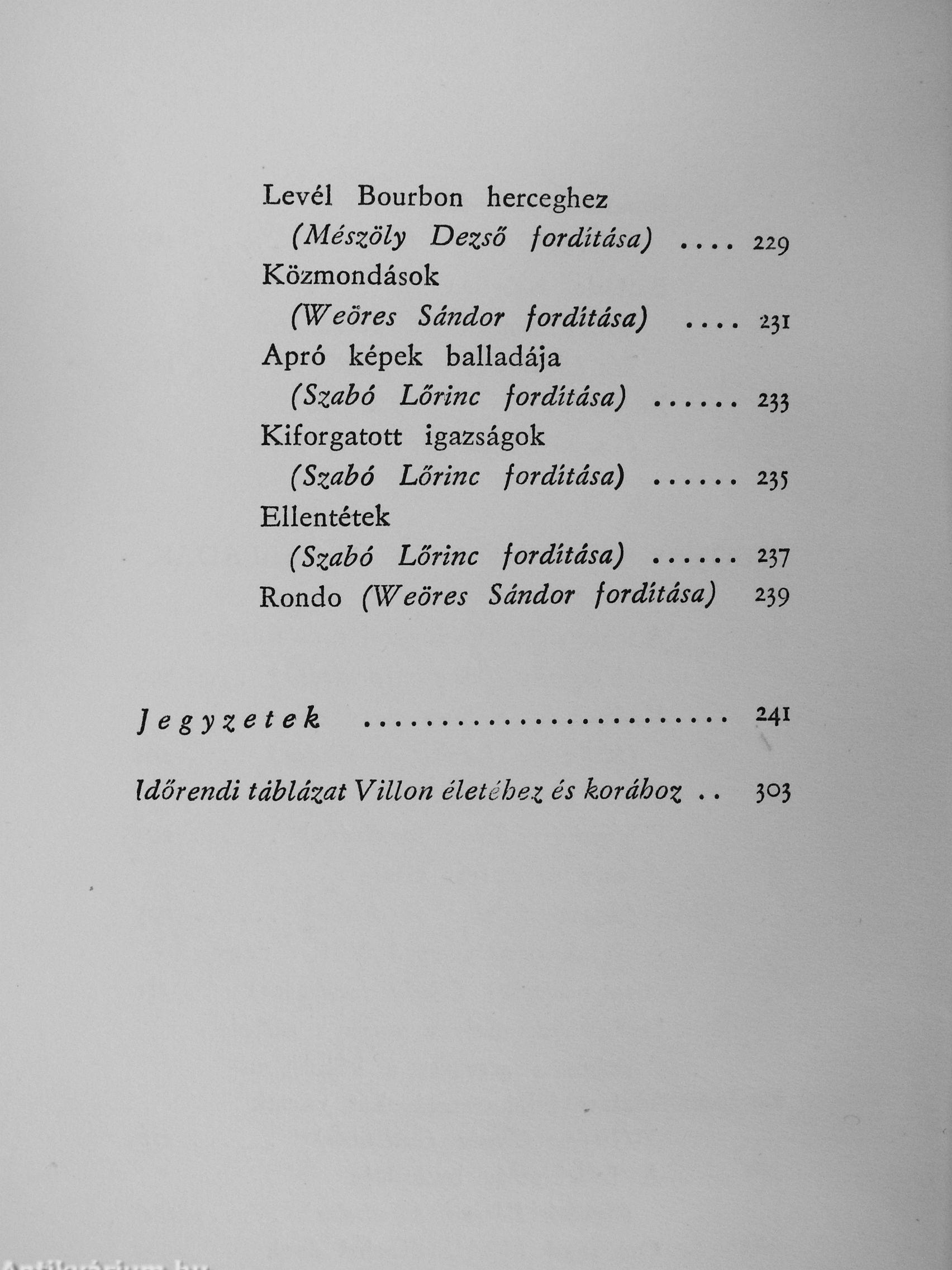 Francois Villon műveinek az Antikvarium.hu-n kapható vagy előjegyezhető listáját itt tekintheti meg: Francois Villon könyvek, művek