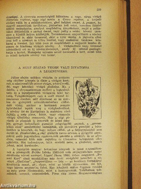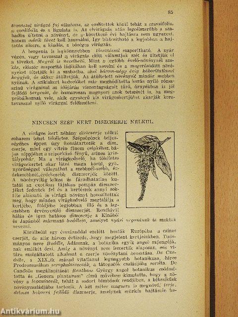 Riportszerűen írtam meg kétszáz és egynéhány, többé-kevésbé ismert kerti és szobai növényünk történetét, eredetét, származását, a tudományos s a népies nevek érdekes vonatkozásait. Összegyűjtöttem ez egyes növényekhez fűződő mondákat, regéket, a régi korok kuruzslóinak, bűbájosainak a növényekkel kapcsolatos szokásait, de az elmúlt századok orvosfűvészeinek a növények gyógyítóerejében vetett hitéről tanuskodó közléseit is. Tettem ezt azért, hogy a mondákból, a regékből, a babonákból még jobban kibontakozzék a növény jelentősége és megsejtett, de teljesen még fel nem ismert bájossága és értéke. Utaltam egyes korok divatvirágaira, a növényszeretet legérdekesebb hajtására, a virágnyelvre, hogy ezzel is teljessé tegyem a kertet, vagy a lakást díszítő növény képét. A növény elnevezőit, felfedezőit is bemutatom, azokat a bátor férfiakat, akik olthatatlan tudományszomjukban, ezer meg ezer veszély közepette, sokszor életük kockáztatásával gyűjtögették a távoli földrészek csodálatos növényeit, hogy gazdagítsák a tudományt és megajándékozzák velük a növénykedvelőket. A kertészek és a növénynemesítők nehéz, aprólékos, nagy figyelmet és sok türelmet igénylő munkájának is emléket emel a könyv. Az ő kitartó munkájuknak köszönhető, hogy a természet egyszerű, sokszor jelentéktelen és szerény virágából valóságos virágcsodákat tudtak előállítani.