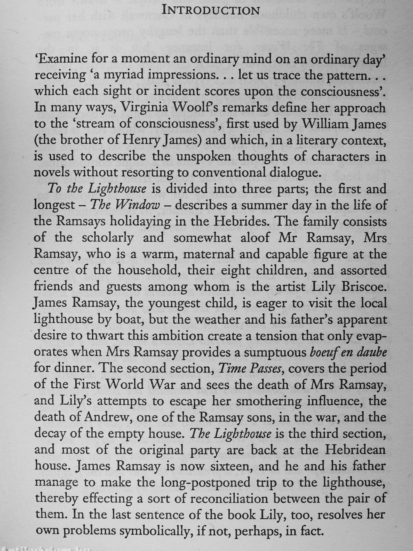 To the Lighthouse is the most autobiographical of Virginia Woolf s novels. It is based on her own childhood experiences, and while it touches on childhood and children's perceptions and desires, it is at its most trenchant when exploring adult relationships, marriage and, indeed, the changing class-structure of its time.