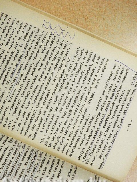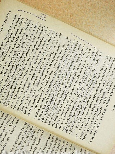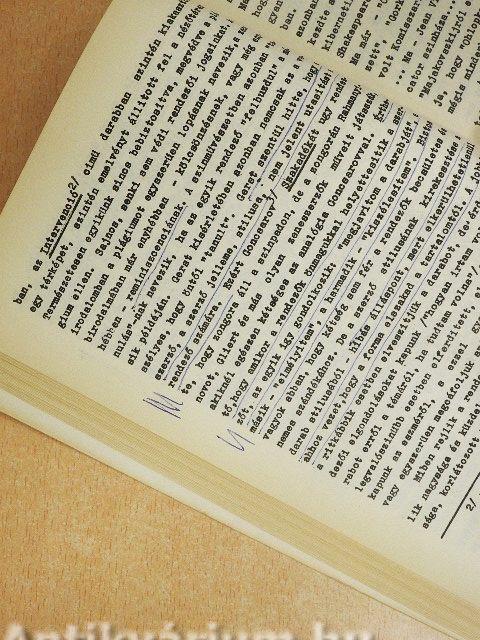 A borító elszíneződött, a gerinc sérült, néhány oldalon bejegyzés és aláhúzás található.