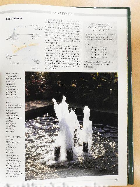 Ez a szép és egyben igen praktikus könyv, miközben minden oldalról áttekinti a víz díszítő szerepét a kertben, rengeteg ötlettel is zsolgál, hogyan építhetjük be a vizet a kerttervezésbe. A művészi klpek tavascskákat, vízfolyásokat, vízeséseket, szökőkutakat és kisebb motívumokat - a kavicsos szökőkutaktól a kőedényekig - mutatnak be, a szöveg pedig mindezek konstrukciójának részleteit is elmayarázza, ahol szükséeges, ábárk segítségéve.