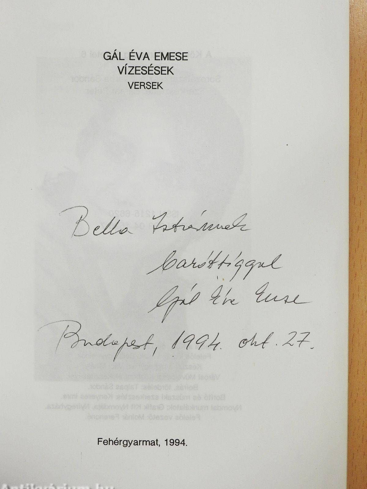 | Megjegyzés: | Gál Éva Emese szerző által dedikált példány. A szerző fekete-fehér fotójával. |