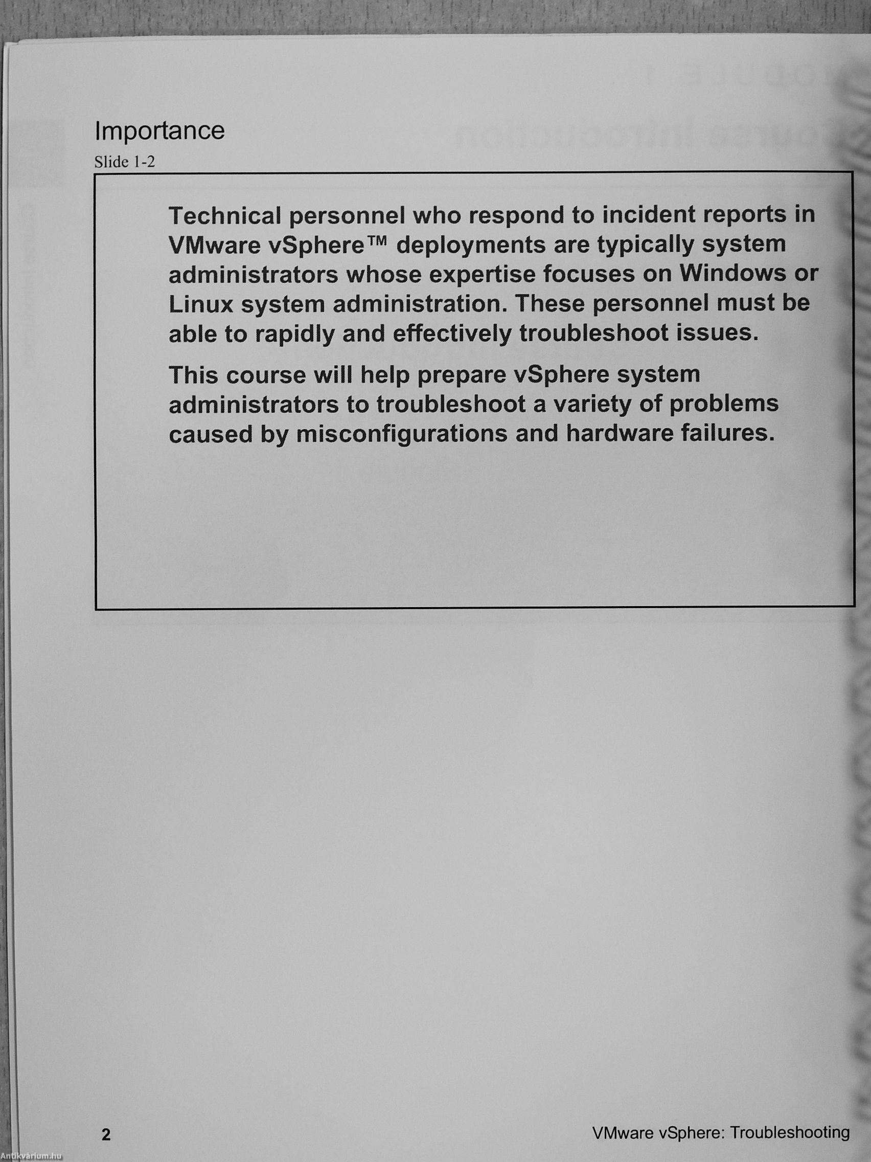 VMware vSphere: Troubleshooting VMware vSphere: Troubleshooting VMware vSphere: Troubleshooting