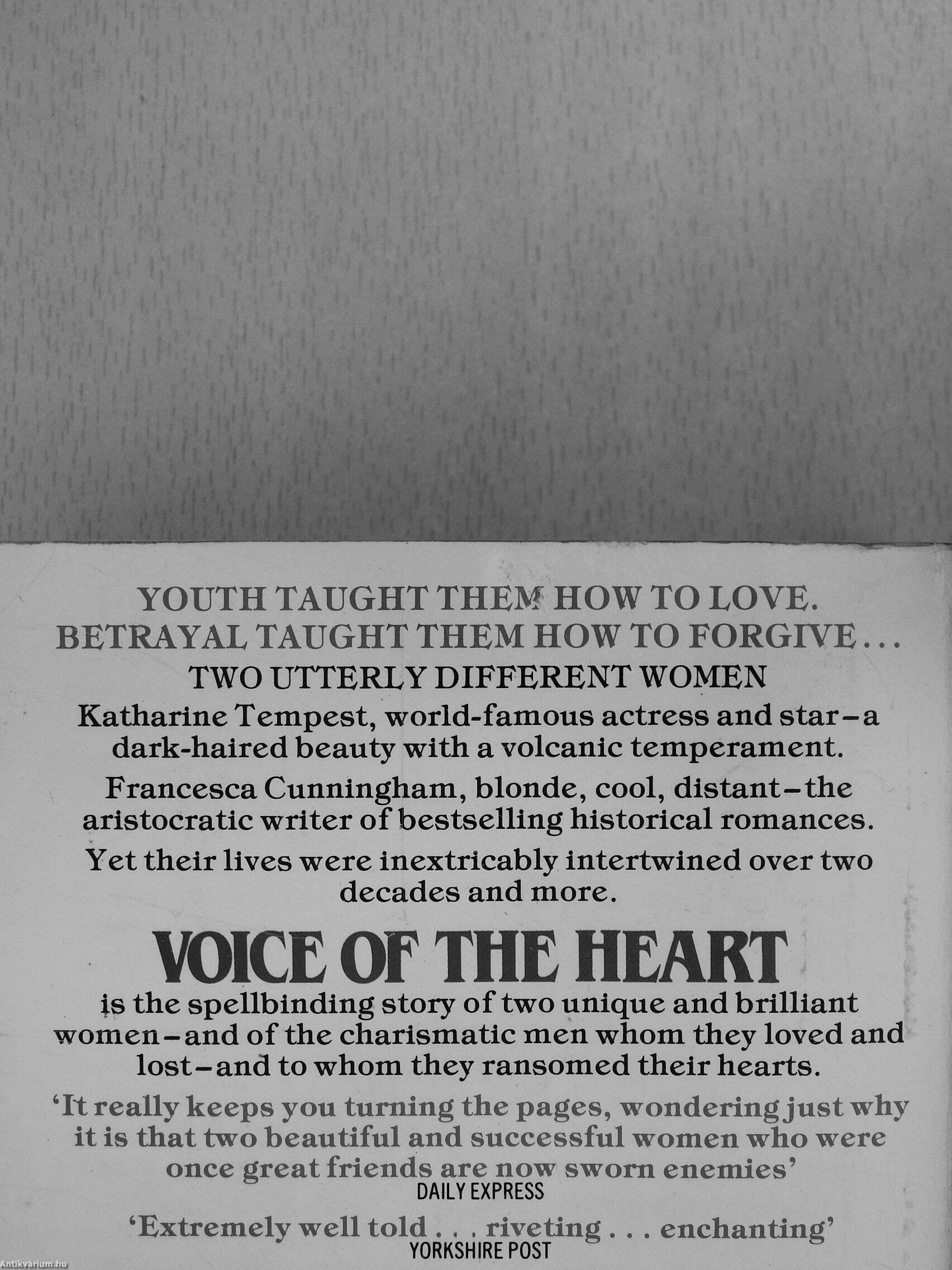 YOUTH TAUGHT THEM HOW TO LOVE. BETRAYAL TAUGHT THEM HOW TO FORGIVE TWO UTTERLY DIFFERENT WOMEN Katharine Tempest, world-famous actress and star-a dark-haired beauty with a volcanic temperament. Francesca Cunningham, blonde, cool, distant-the aristocratic writer of bestselling historical romances. Yet their lives were inextricably intertwined over two decades and more.