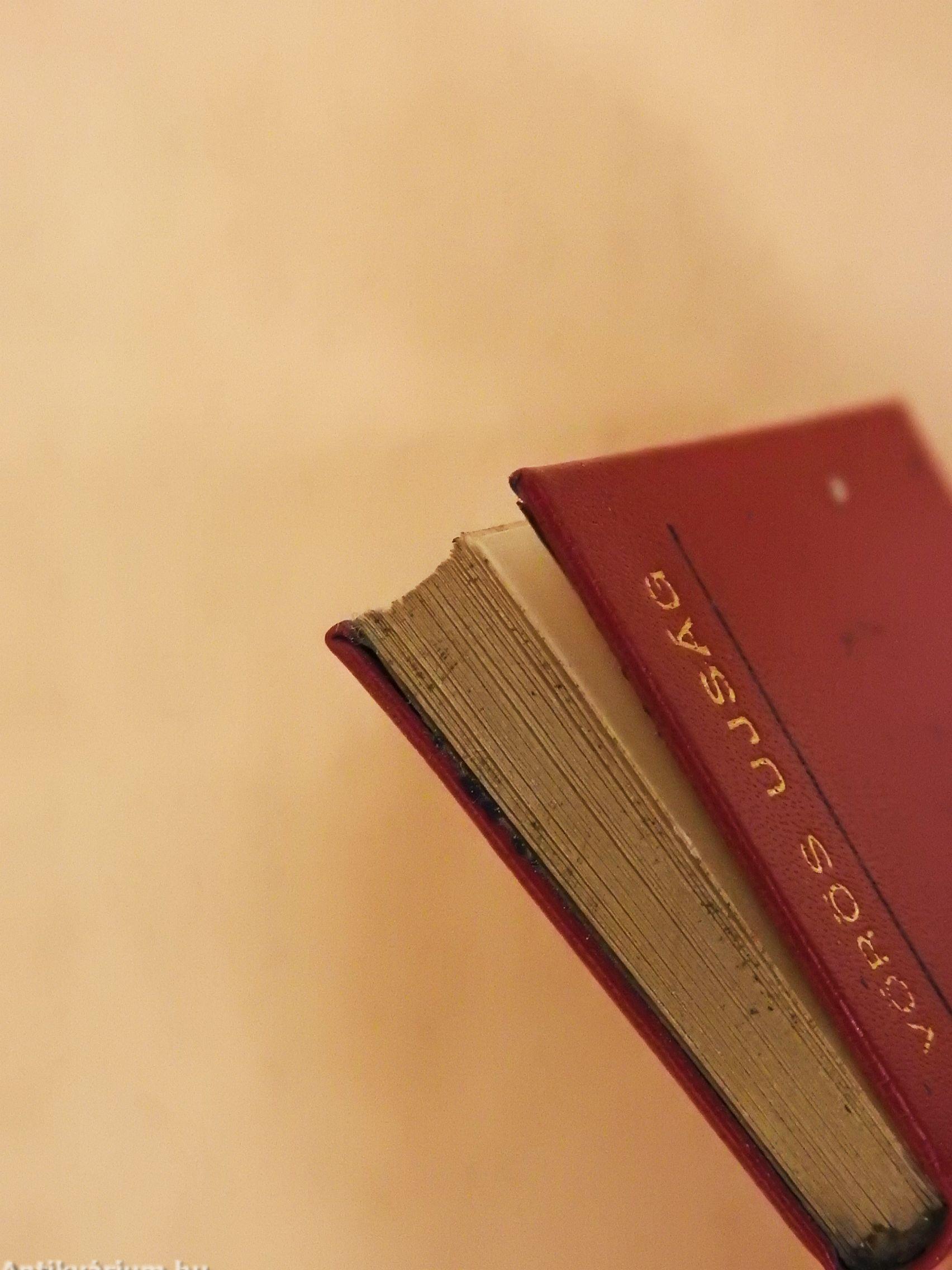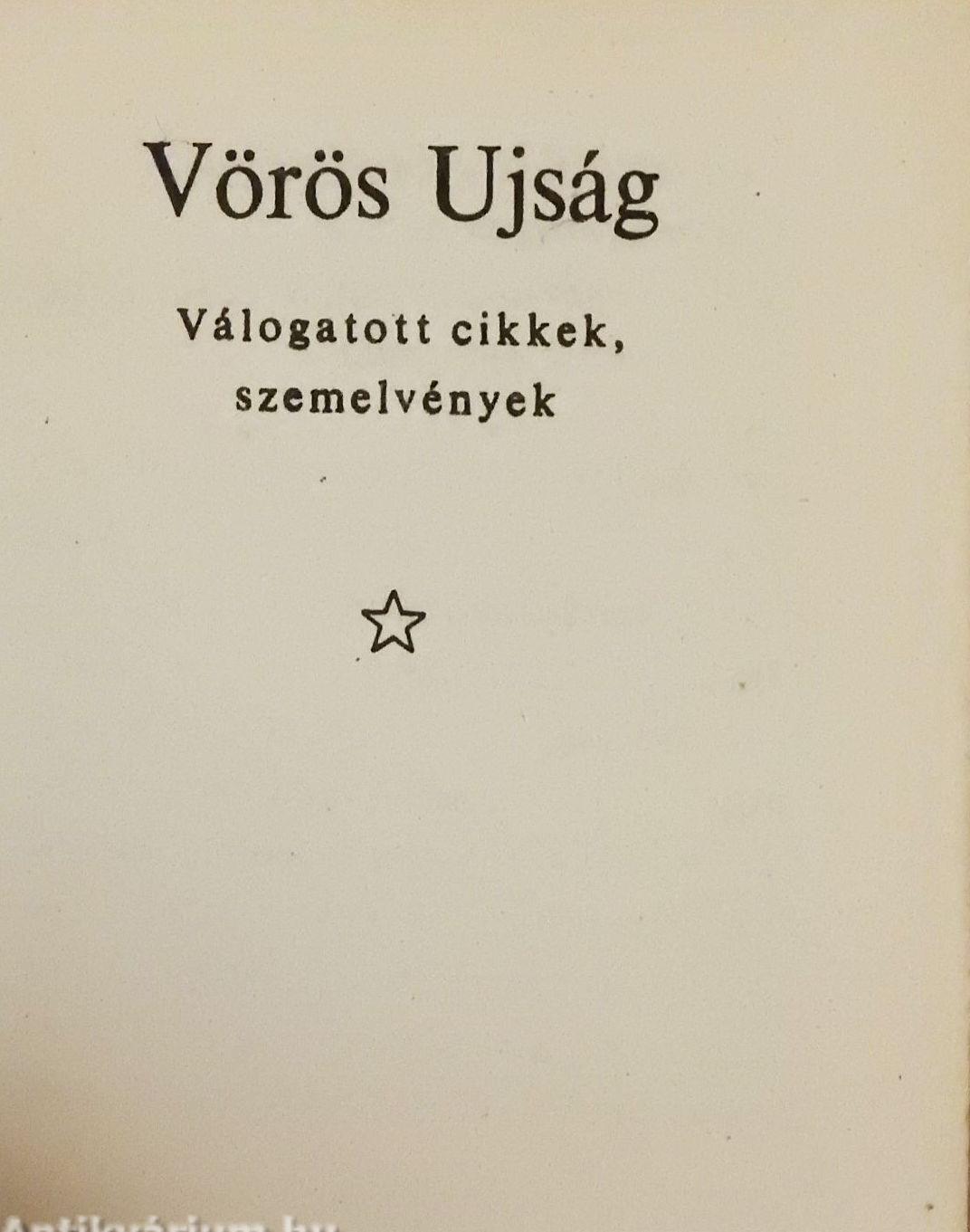 | Megjegyzés: | Számozatlan kiadás. Kiadott példányszám: Készült 3000 példányban, ebből 300 példány számozva. Könyvtervező: Erdélyi János Nyomda: Zrínyi Nyomda, Budapest Kiadási alkalom: 1918. december 7-én jelent meg Magyarországon az első legális kommunista lap, a Vörös Ujság. Az ötvenedik évforduló tiszteletére adta ki a Vörös Ujság cikkeinek e válogatott gyűjteményét a Magyar Újságírók Országos Szövetsége. A könyv pontos mérete: 36 x 46 mm. |