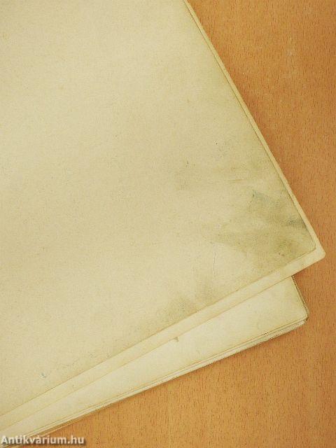 A borító foltos, kopott, a gerinc sérült. Több lap kijár, foltos. Az első előzéklap hiányzik. A címlap javított.