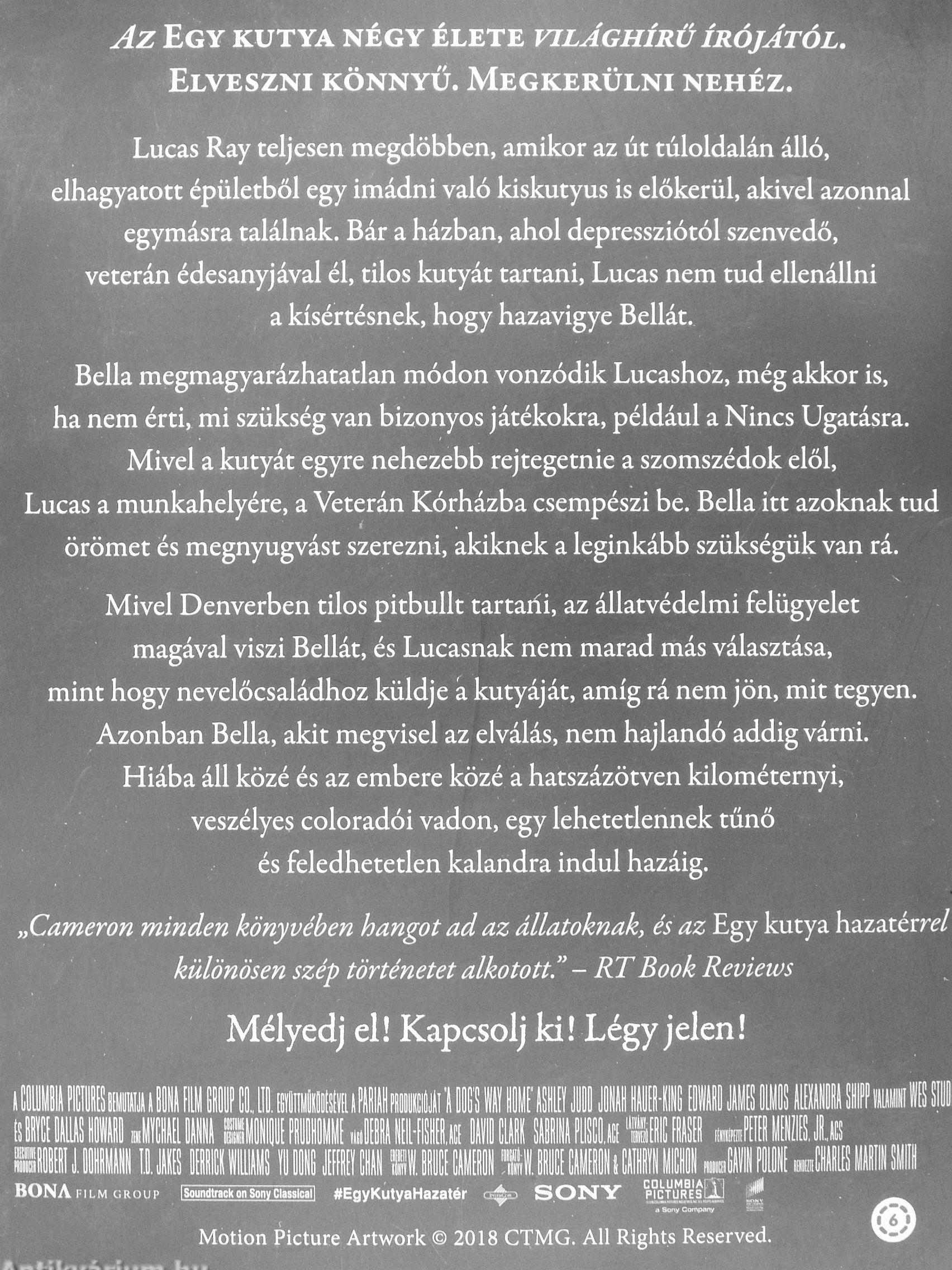 Mivel Denverben tilos pitbullt tartaiíi, az állatvédelmi felügyelet magával viszi Bellát, és Lucasnak nem marad más választása, mint hogy nevelőcsaládhoz küldje á kutyáját, amíg rá nem jön, mit tegyen. Azonban Bella, akit megvisel az elválás, nem hajlandó addig várni. Hiába áll közé és az embere közé a hatszázötven kilométernyi, veszélyes coloradói vadon, egy lehetetlennek tűnő és feledhetetlen kalandra indul hazáig.