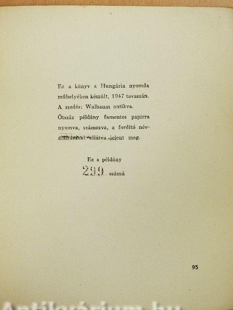 Megjegyzés: Sorszámozott, aláírás nélküli kiadás. Hungária Hirlapnyomda Rt. nyomása, Budapest.
